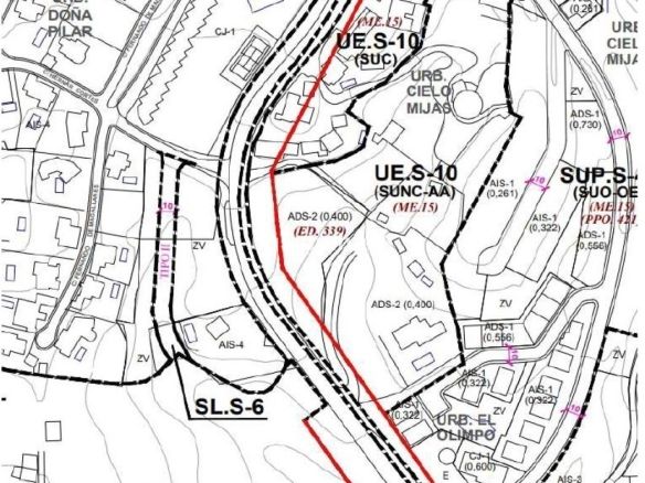 This urban plot is located in a privileged location in the municipality of Mijas. Its elevated position offers magnificent views of the Costa del Sol. The land is located within the UE S-10 Execution Unit, and has a definitively approved Detailed Study (ED. 339) "Cielo Mijas" dated April 27, 2007, which proposes the development of a residential complex of 18 semi-detached homes, each measuring 176 m2, with a parking space. A technical report and detailed study are also included. The buyer must carry out the Basic and Execution Project and apply for the building permit.