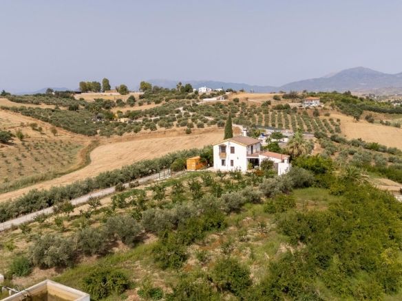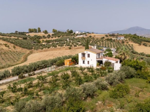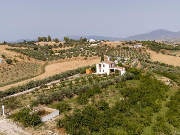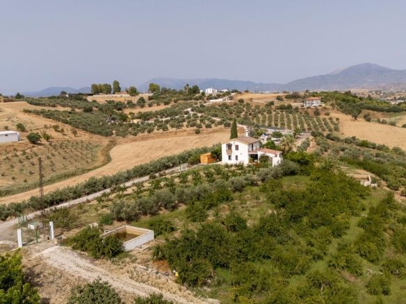 Wonderful finca with almost 50,000 m2 of land, totally fenced, with 5 different entrances, water from its own well plus irrigation water from the canal such us two algibes/ water deposits. T he land is divided into several terraces and planted mainly with pear and pomegranate trees, as well as olive, walnut, lemon, and orange trees. Within the farm, a two-story house was built in 2005 which has three bedrooms, two bathrooms, a living room with a fireplace, and a fitted kitchen. A spacious covered porch entrance and a separate 30 m2 storage room. An ideal property for lovers of the countryside and tranquility, 25 minutes from Malaga and 10 minutes from the town of Cártama.