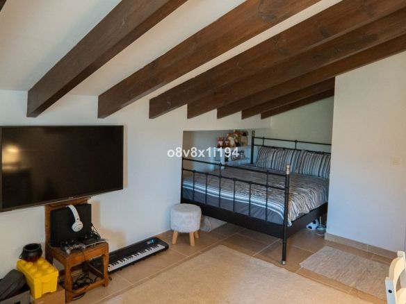 The heart of the house is the bright living/dining room, which impresses with its high ceilings and exposed beams, providing a sense of spaciousness and rustic authenticity. In contrast, other areas of the house retain beautiful old, oval, rustic ceilings, an architectural detail that evokes the original charm of the finca. The comprehensive renovation has been carried out with an elegant Nordic touch, merging rustic warmth with clean, bright lines.