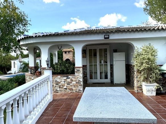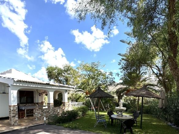 For sale a magnifficent country house! Just 1,5 km from the city center. Start the description witn an easy acces to the house, asfalted road. Entring the territory you can park 2 cars or more on site. There is a big huerto with fruit trees: nisperos, clementinas, aguacates, naranjas etc. The house is fully legalized, 3 bedrooms and 1 bathroom in the house (another full bathroom near the pool). Air conditioner in all bedrooms, and in the living room. There is a fire place in the living room. Fully equipped kitchen. Spacious terrace , covered terrace. Summer kitchen (with possibility to make another bedroom or independent studio). BBQ is a heat of the house to enjoy family and friends dinners , just close to a splendid garden with chill out zone to enjoy spanish endless summer.