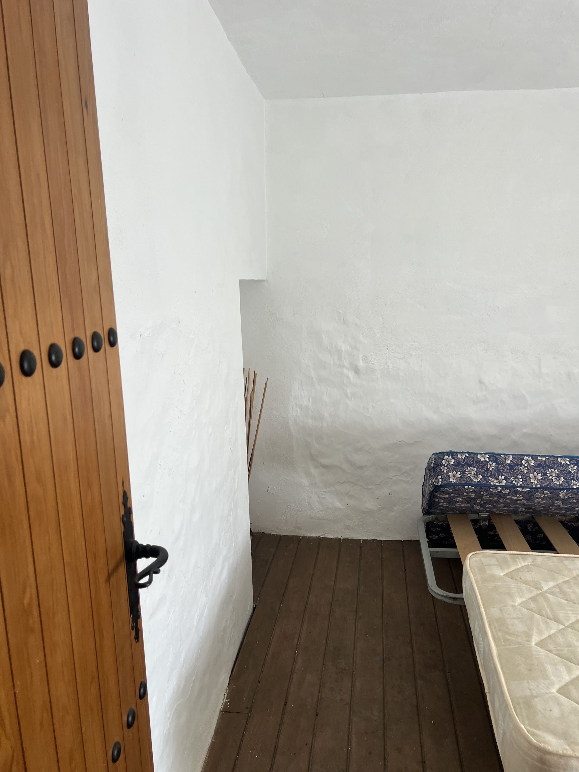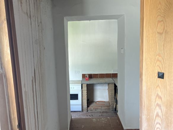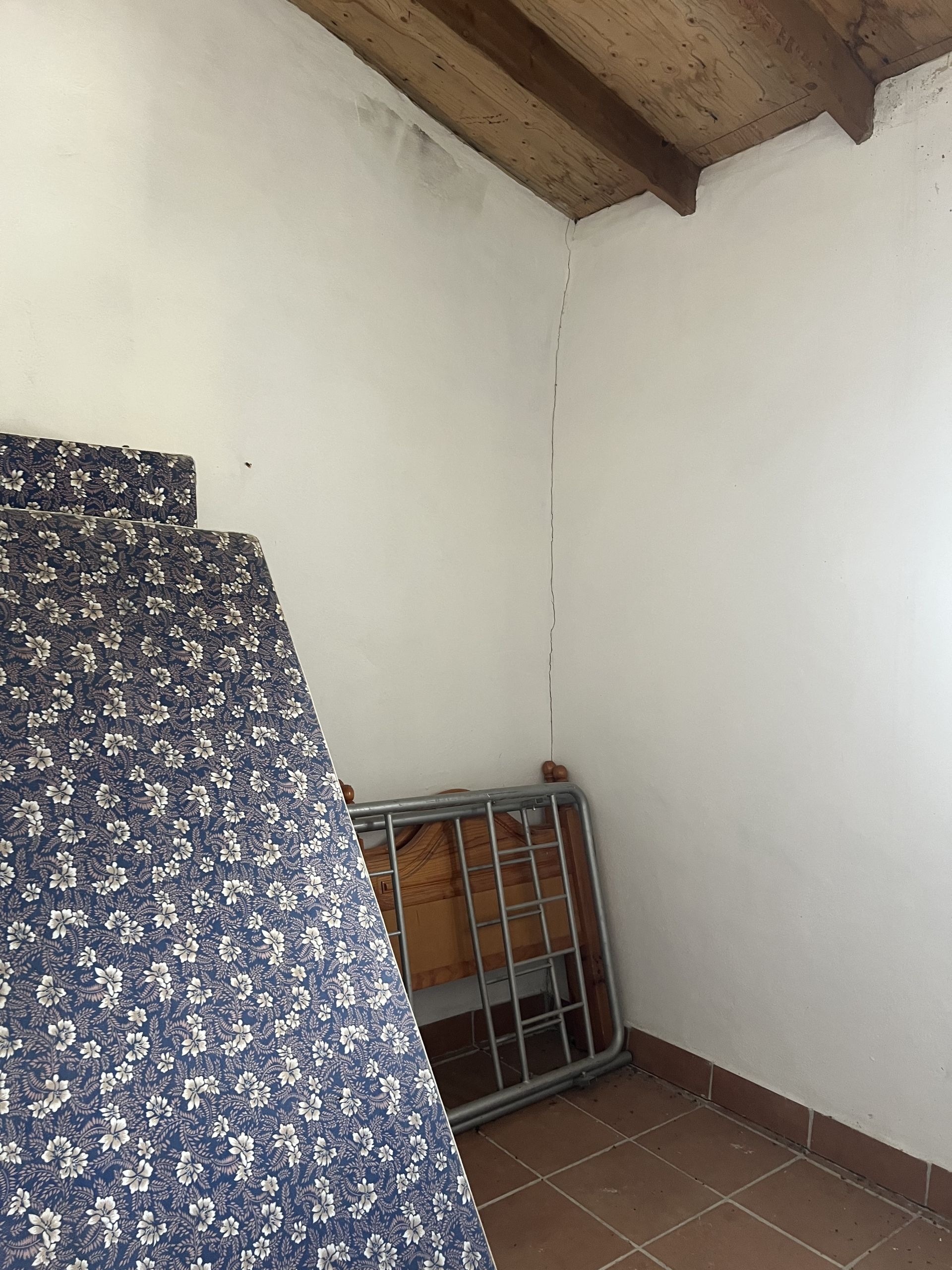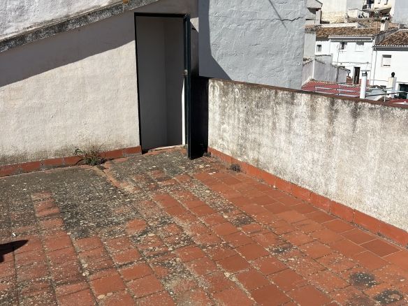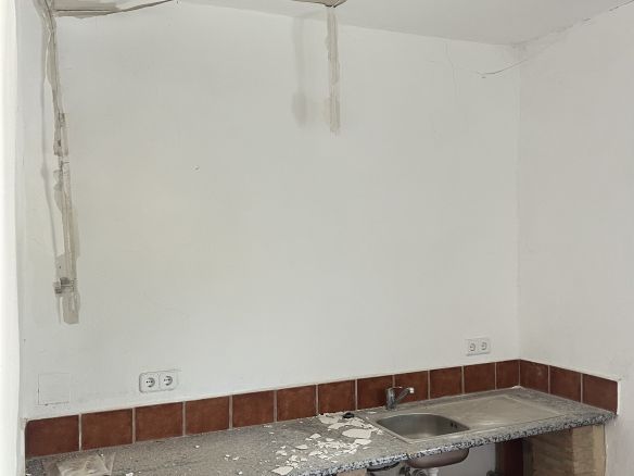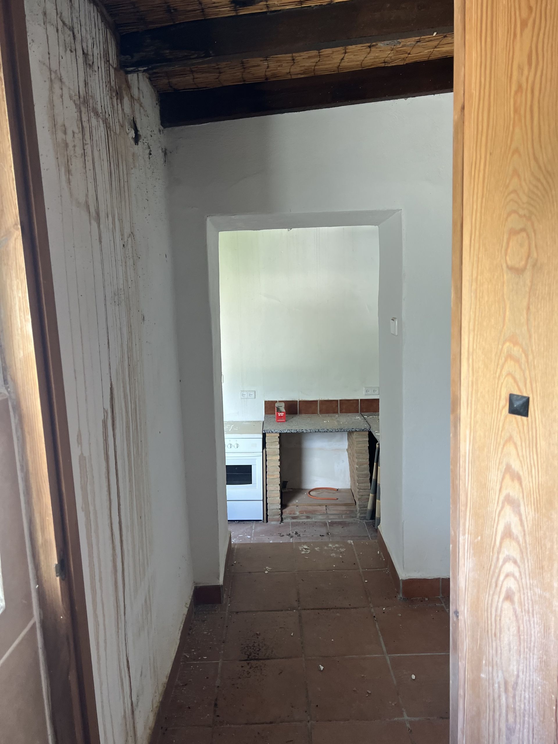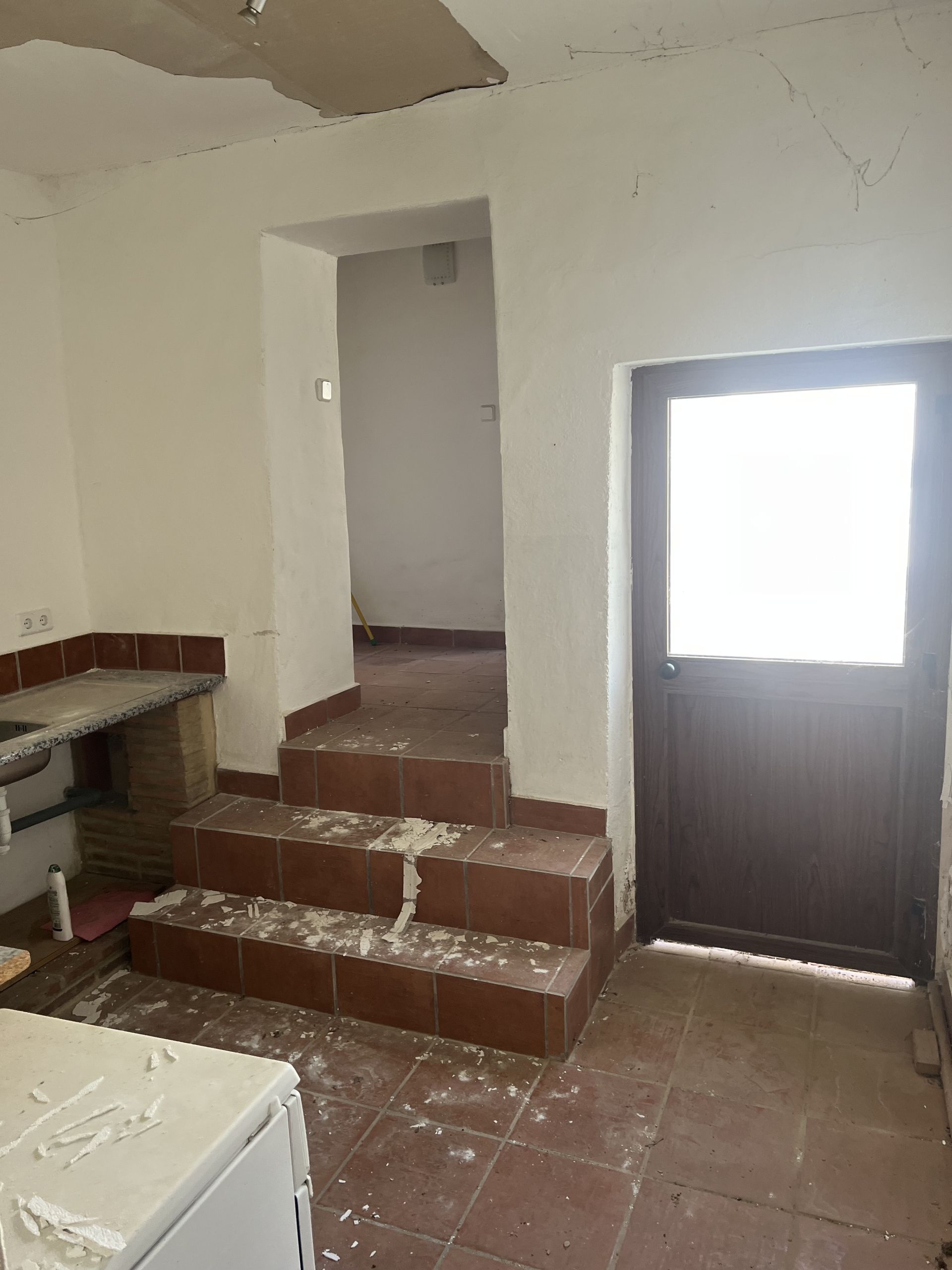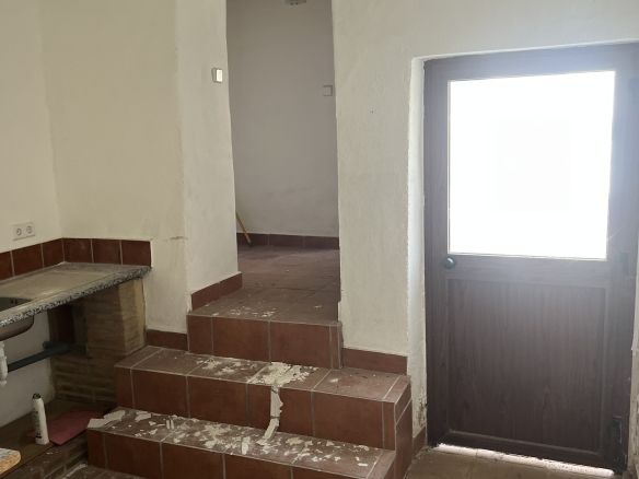 The house, partially renovated, is set over two levels and offers a fantastic roof terrace with views across the countryside of the area. Entering from the street you are greeted by a renovated living space with new flooring. To the right of this there is access to a well proportioned double bedroom with also benefits from having access to a space that would be ideal for a walk in wardrobe. Behind the main living space you find the kitchen which again, is partially renovated and will need completing. This is a good sized room and has access from here to the garden area and also a storage room which is located underneath this area. from the kitchen there are some steps up to a storage space which in turn leads through to the large main bathroom of the property.