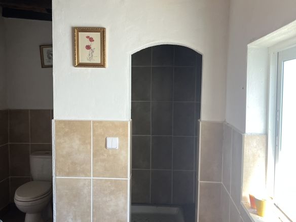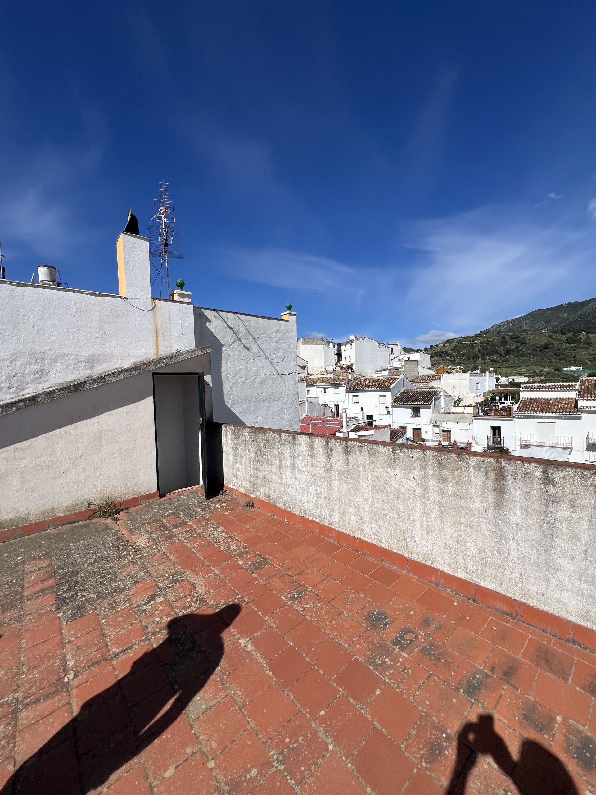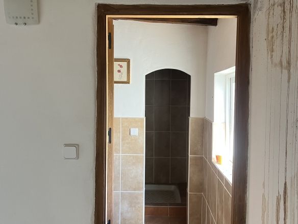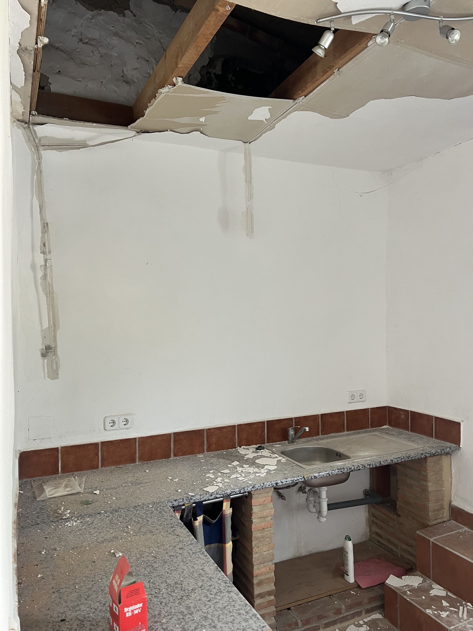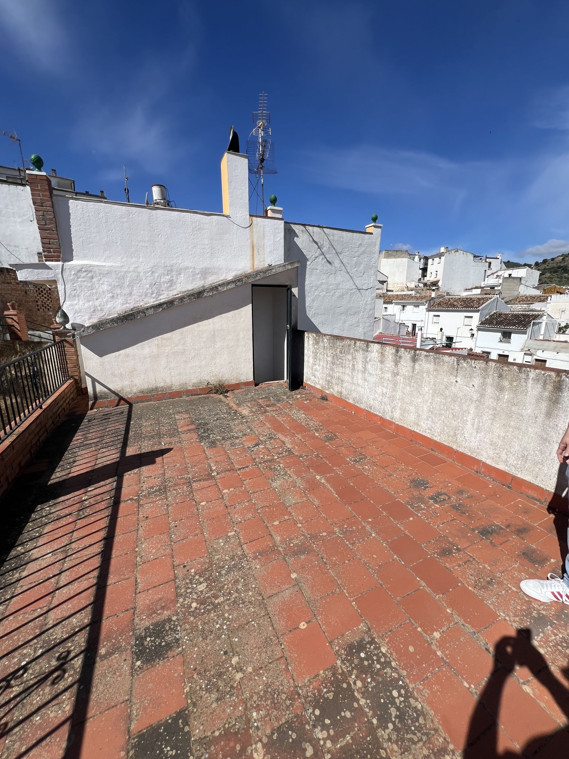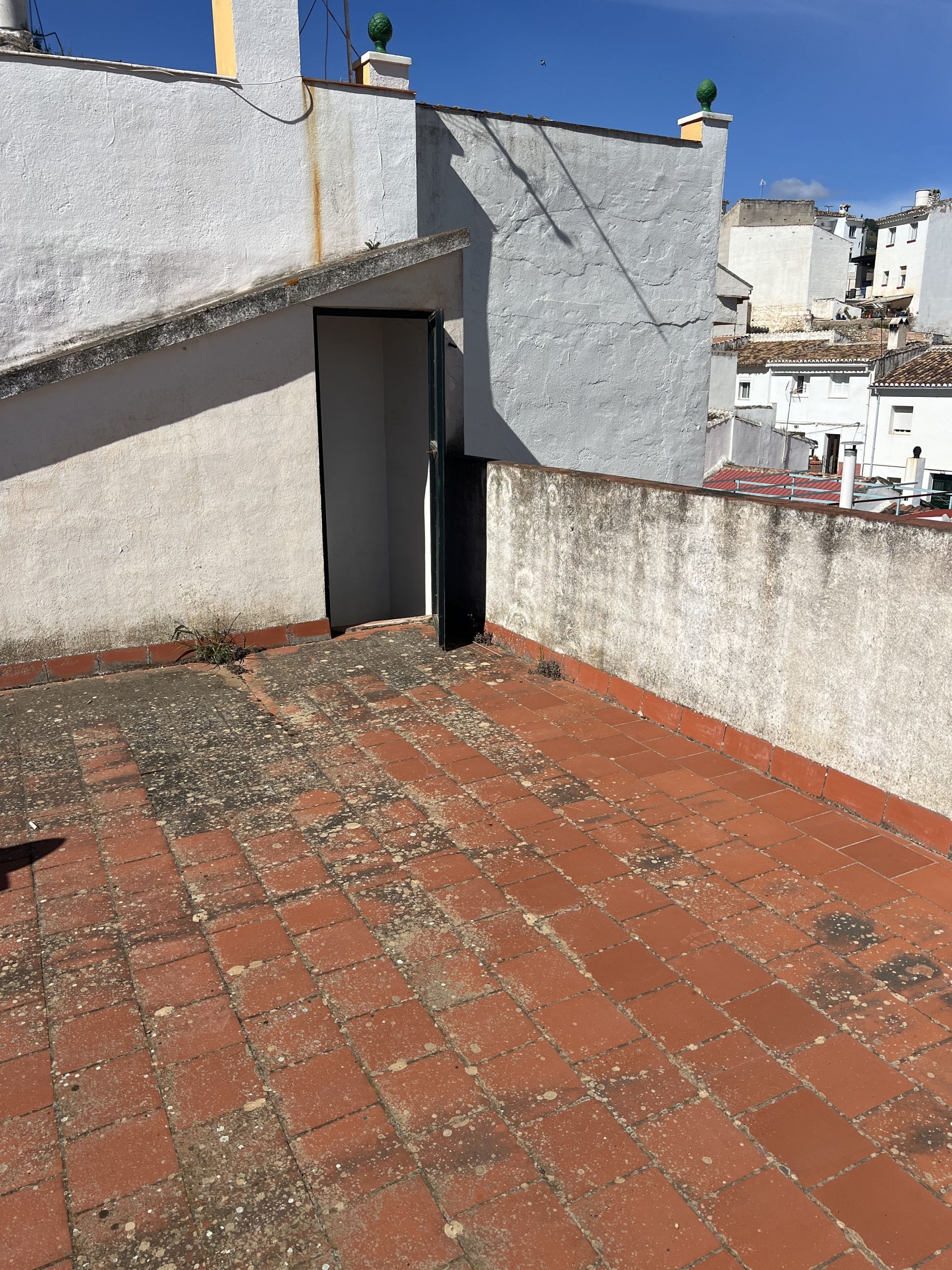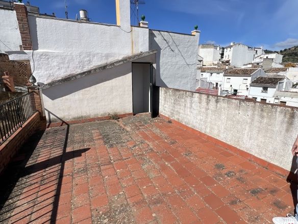 The house, partially renovated, is set over two levels and offers a fantastic roof terrace with views across the countryside of the area. Entering from the street you are greeted by a renovated living space with new flooring. To the right of this there is access to a well proportioned double bedroom with also benefits from having access to a space that would be ideal for a walk in wardrobe. Behind the main living space you find the kitchen which again, is partially renovated and will need completing. This is a good sized room and has access from here to the garden area and also a storage room which is located underneath this area. from the kitchen there are some steps up to a storage space which in turn leads through to the large main bathroom of the property.