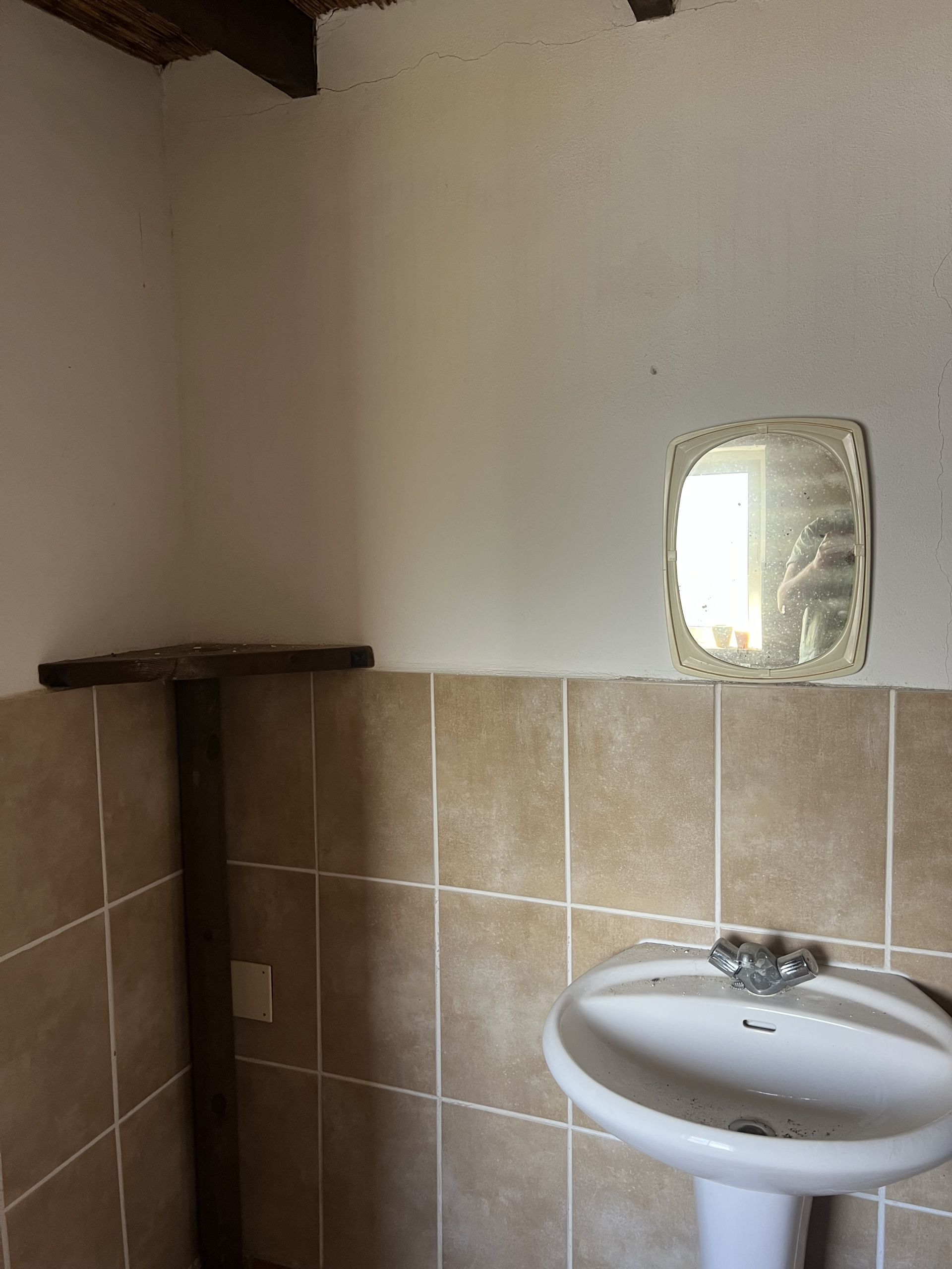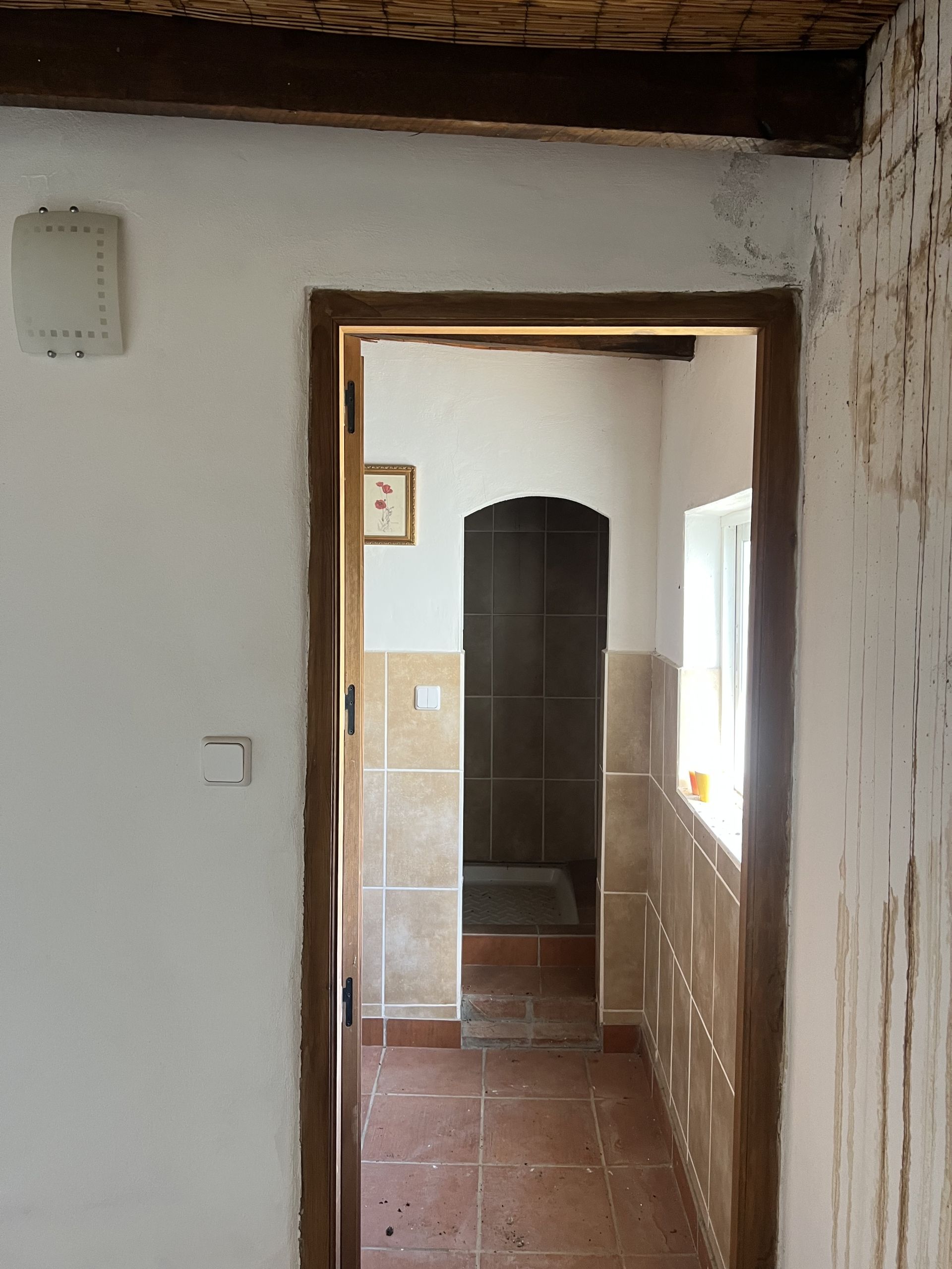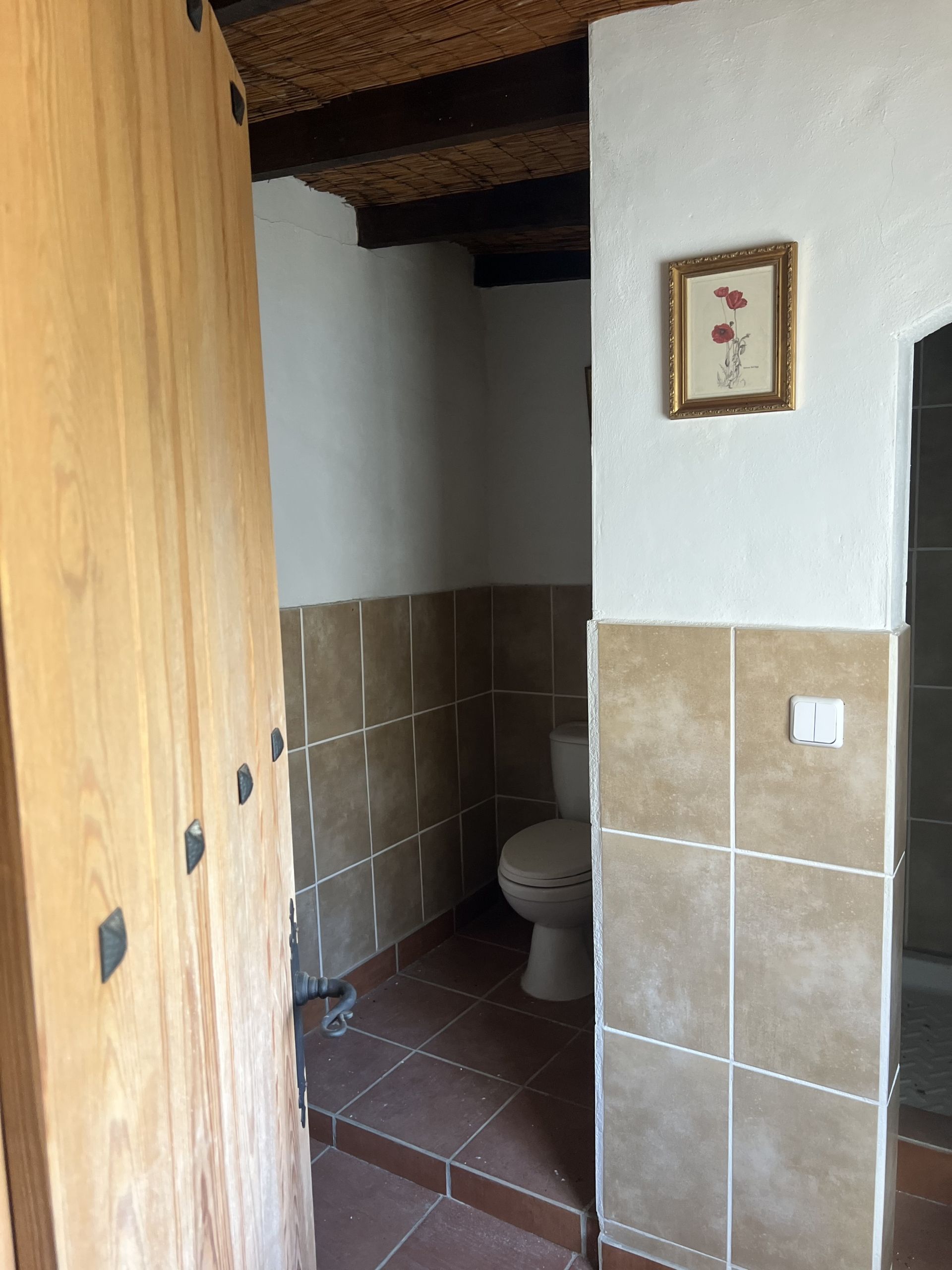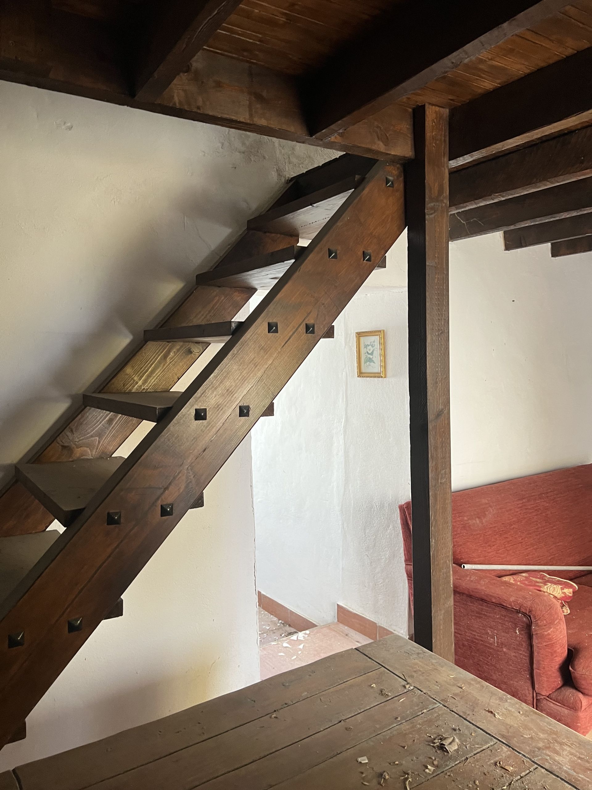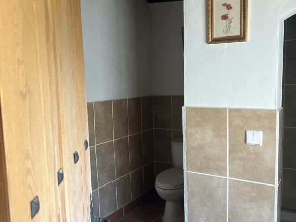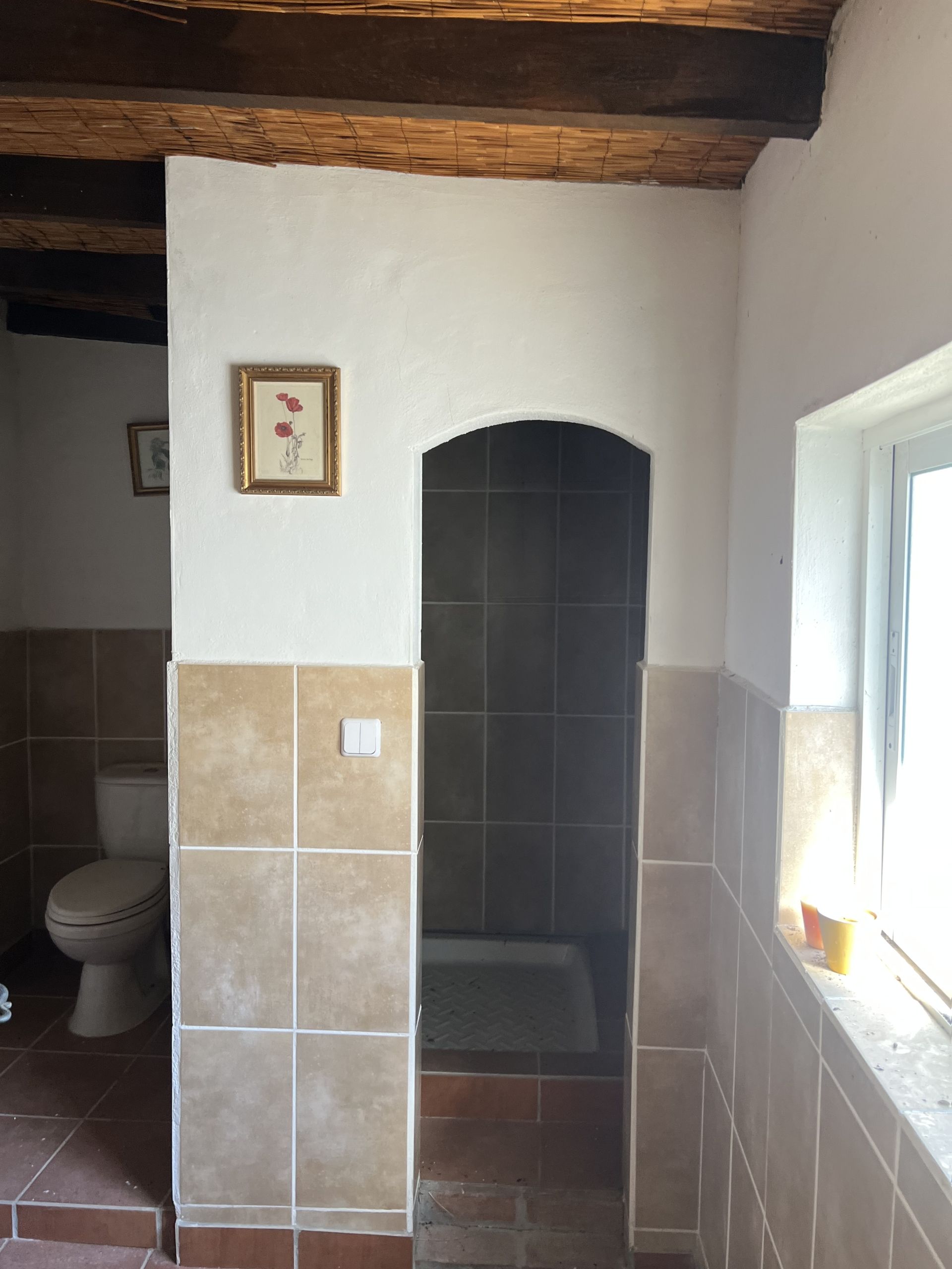 The house, partially renovated, is set over two levels and offers a fantastic roof terrace with views across the countryside of the area. Entering from the street you are greeted by a renovated living space with new flooring. To the right of this there is access to a well proportioned double bedroom with also benefits from having access to a space that would be ideal for a walk in wardrobe. Behind the main living space you find the kitchen which again, is partially renovated and will need completing. This is a good sized room and has access from here to the garden area and also a storage room which is located underneath this area. from the kitchen there are some steps up to a storage space which in turn leads through to the large main bathroom of the property.