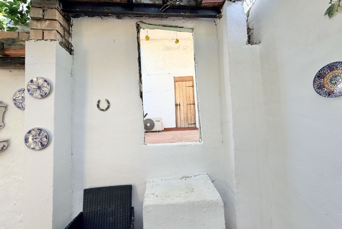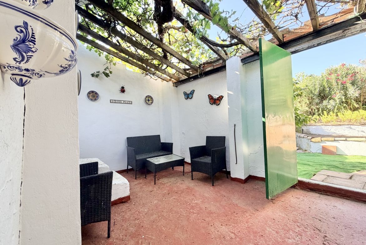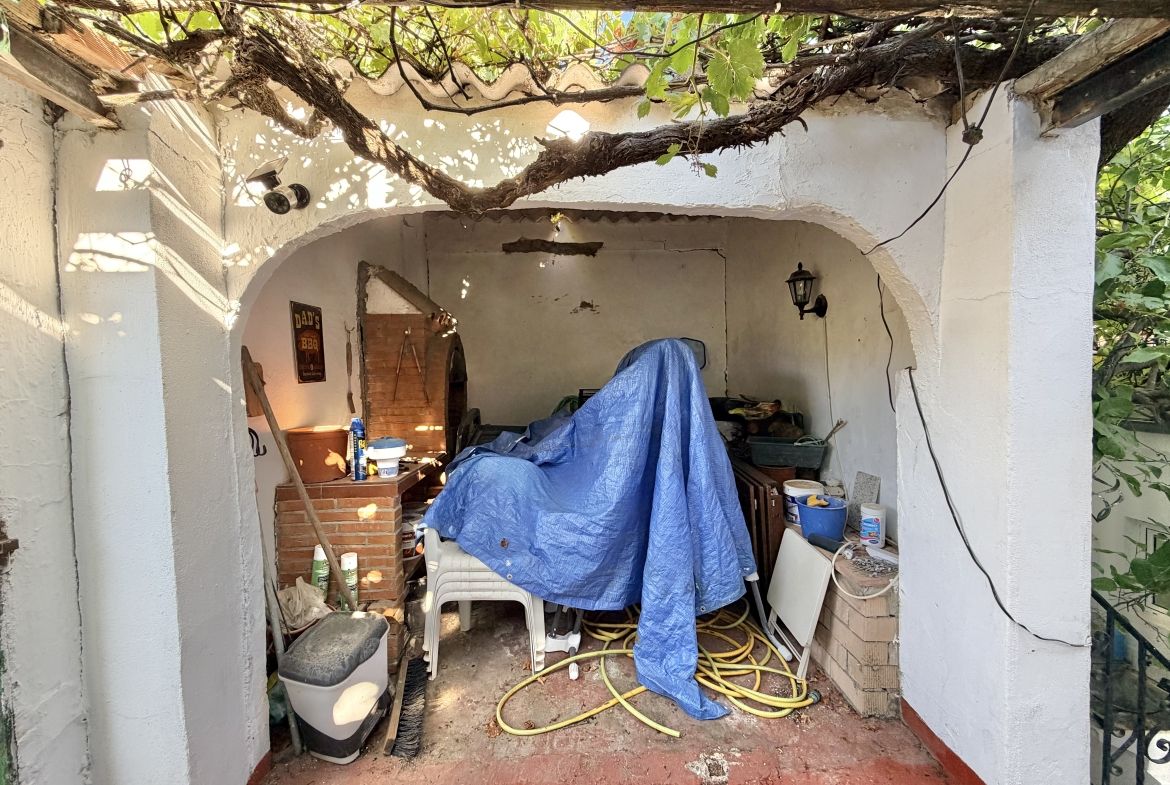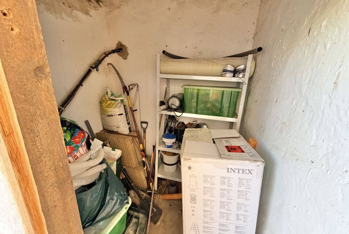 Entering through from the balcony doors onto the patio there is a beautiful lemon tree allowing for shade through the summer months. Going up from here, and to the right there is a summer kitchen space with traditional barbecue and to the left a seating area, ideal as a dining space, shaded by a mature grape vine. Up the stairs from here there is another terrace looking down over the lemon tree with access to a storage room, currently used to store the swimming pool that is used throughout the summer months in the main garden.