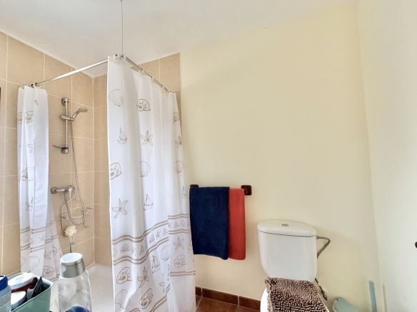 From the kitchen there is access to the ground-floor bathroom, which includes a shower area.