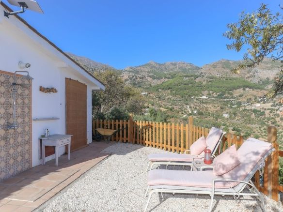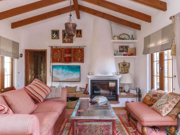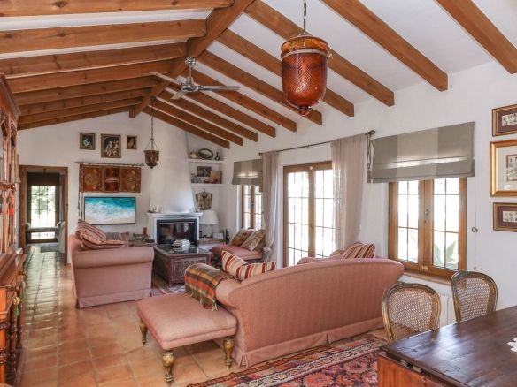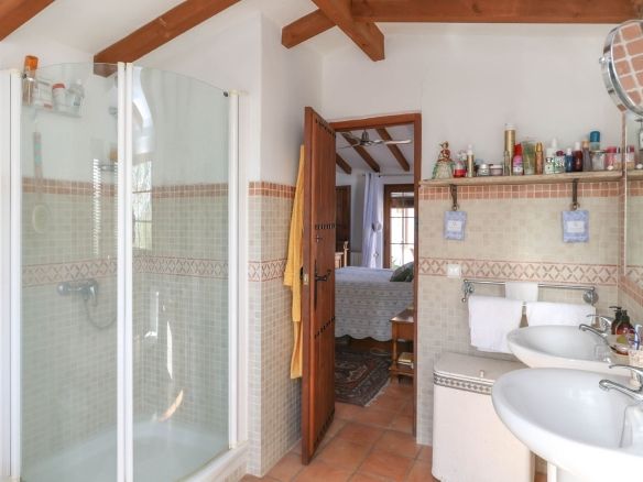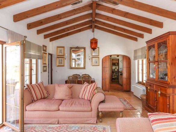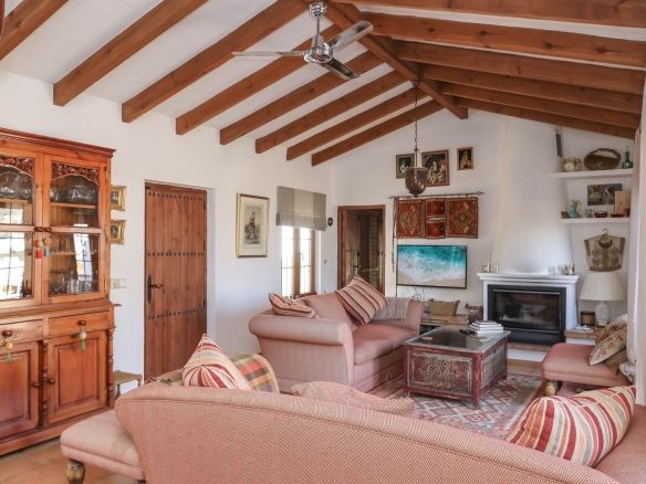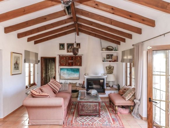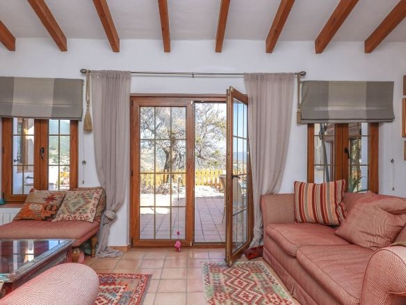 Double wooden Andalusian doors open into a welcoming entrance hall, which flows seamlessly into the spacious lounge. Stretching across the rear of the property, this room perfectly frames the spectacular views of Casarabonela and the distant mountains.