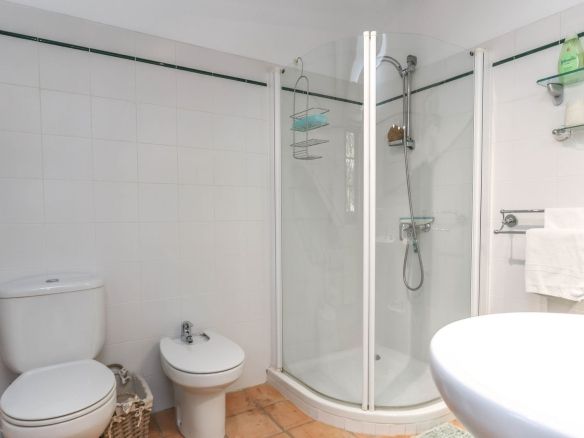 There are two spacious bedrooms, each with its own ensuite bathroom and fitted wardrobes. Both feature underfloor heating for added comfort. Positioned on opposite sides of the home, the bedrooms ensure privacy for both owners and guests. The guest suite even enjoys a private terrace — a peaceful haven for morning coffee or evening sunsets.