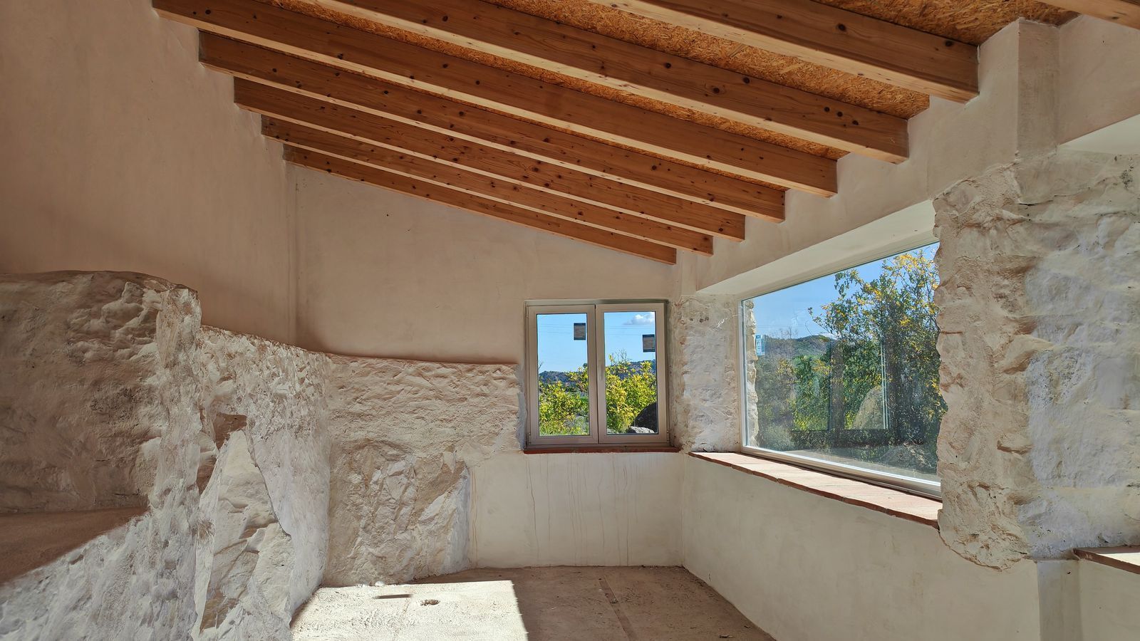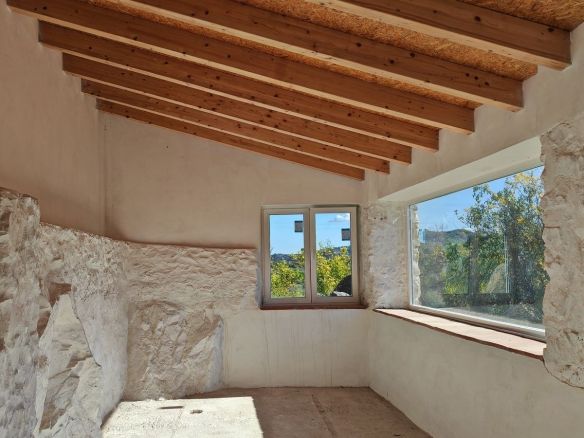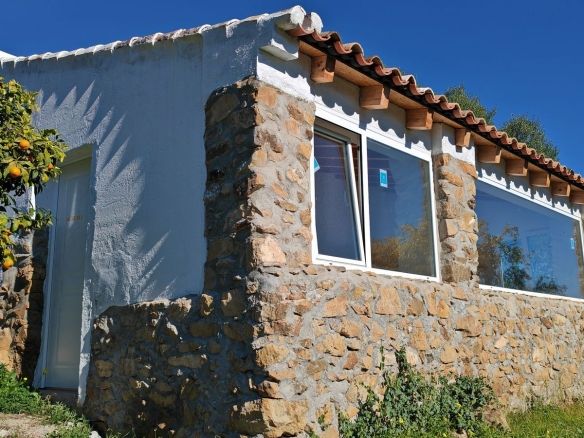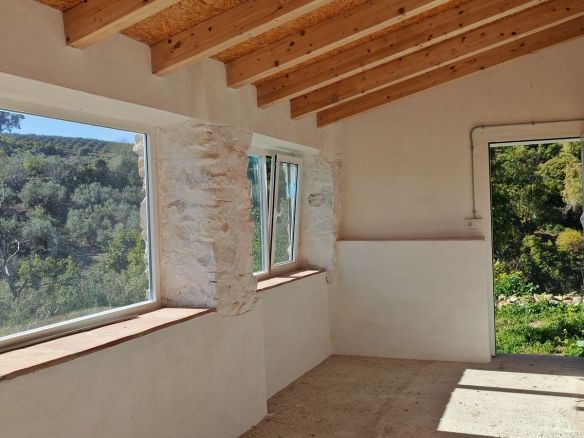 One of these three additional buildings has already been completed and is ready for rental. The other two still need a bathroom and possibly a kitchenette/kitchen installed. The property is located in a natural setting with stunning views and borders a small river. An unpaved road winds from the main road across the 15,000m² plot to a spacious parking area.
