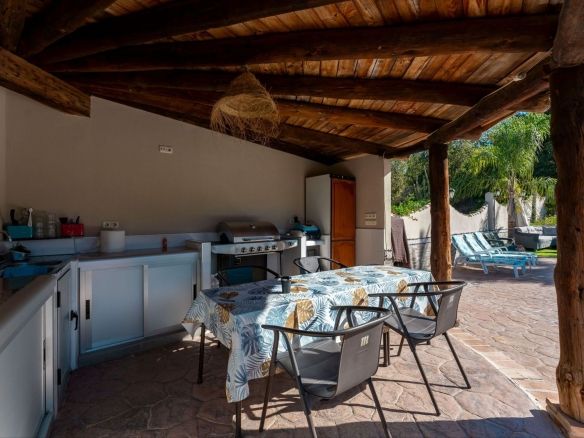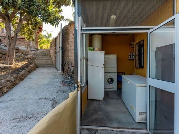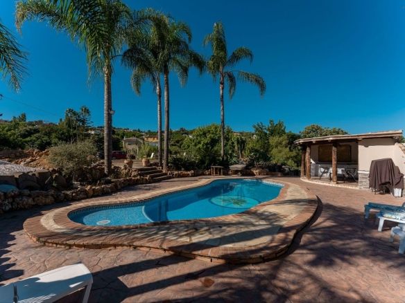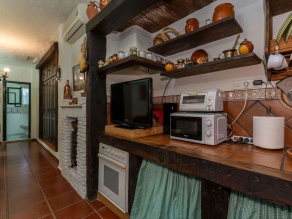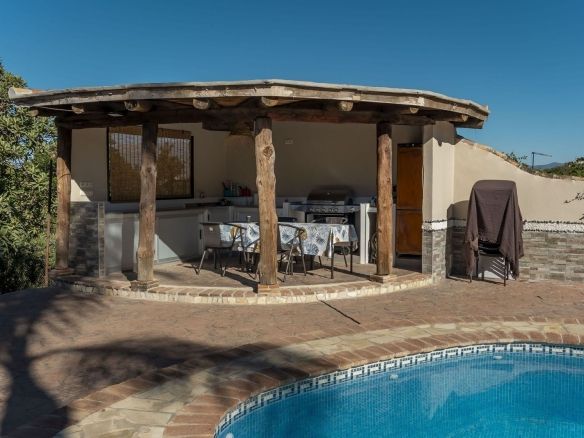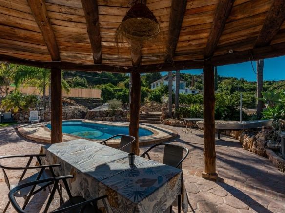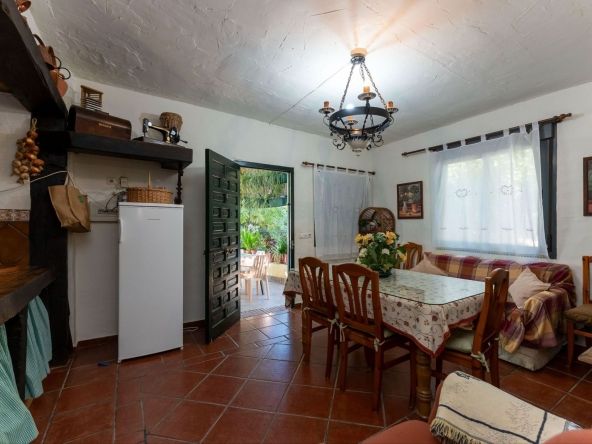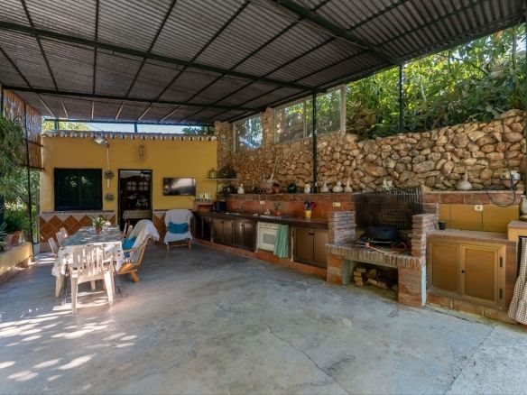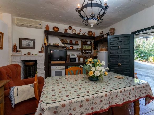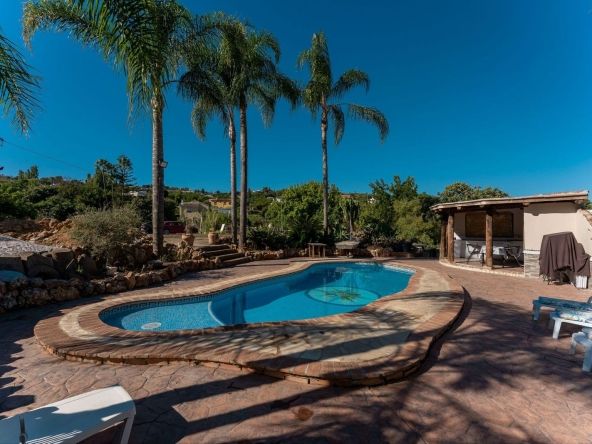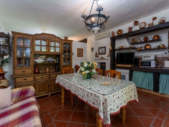 This charming and traditional single-story country property is located just a short drive from the vibrant village of Coín. Set on a private plot of 2,550m², distributed over three terraces, the home enjoys peace, privacy, and lovely countryside surroundings. The house itself offers three bedrooms and two bathrooms. Please note that the third bedroom is a single small room accessed through the second bedroom, and one of the bathrooms is external, conveniently located for poolside use. Inside, there is a cozy living room with a fireplace and air conditioning, plus a spacious covered terrace with a summer kitchen, perfect for year-round outdoor living.