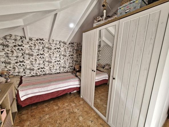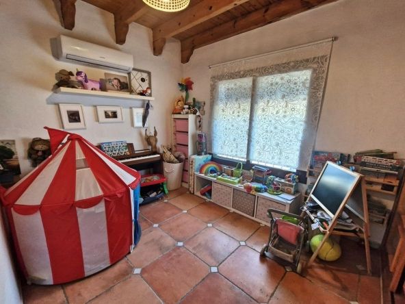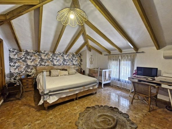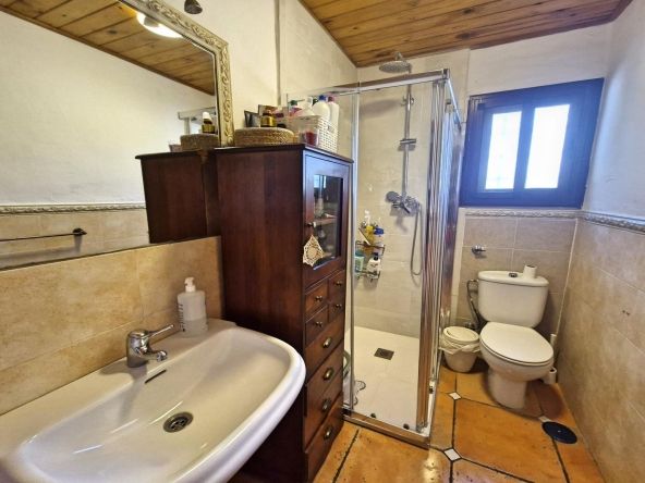 The ground floor welcomes you via a spacious entrance terrace with outside kitchen and BBQ, ideal for outdoor dining. Inside, you’ll find a cosy living room with a fireplace, a fully fitted kitchen, a comfortable bedroom, and a family bathroom. Upstairs, the master bedroom is accompanied by two single bedrooms, and a large roof terrace with views of the surrounding landscape.