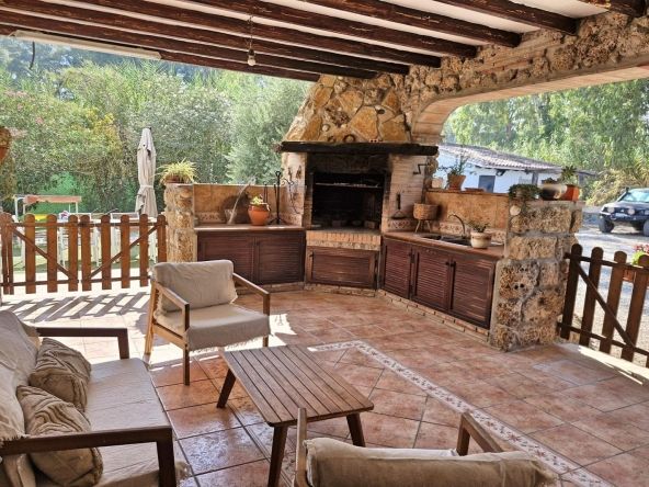 Set on a manageable 2,000m² plot with an electric entrance gate, the property benefits from its own registered well, irrigation water, and town water supply. Additional features include an outside storage room, car port, and ample parking for multiple vehicles.