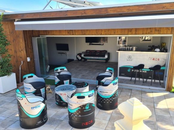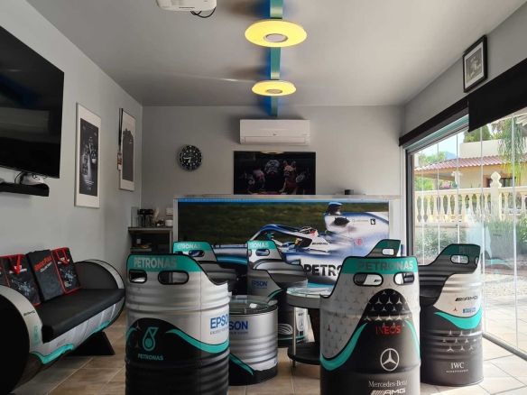Outside, the paved garden has a large swimming pool, pergola with outdoor jacuzzi, barbecue area & storage room. There is also an impressive games room with its own bar, kitchen and golf simulator, perfect for entertaining and sports events.