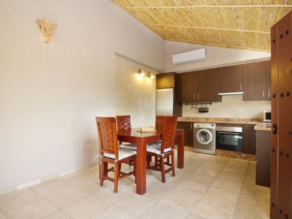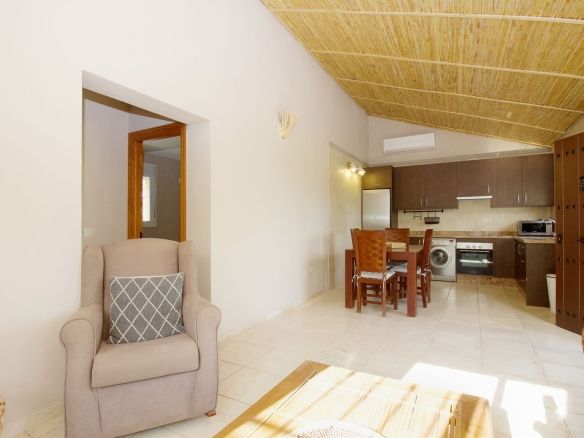 The property has a practical 76 m² house designed for maximum comfort and functionality. Inside you will find a cozy living room with fireplace and air conditioning , ideal for enjoying warm evenings, a fully equipped kitchen, two small bedrooms that offer a cozy space and a bathroom with shower.