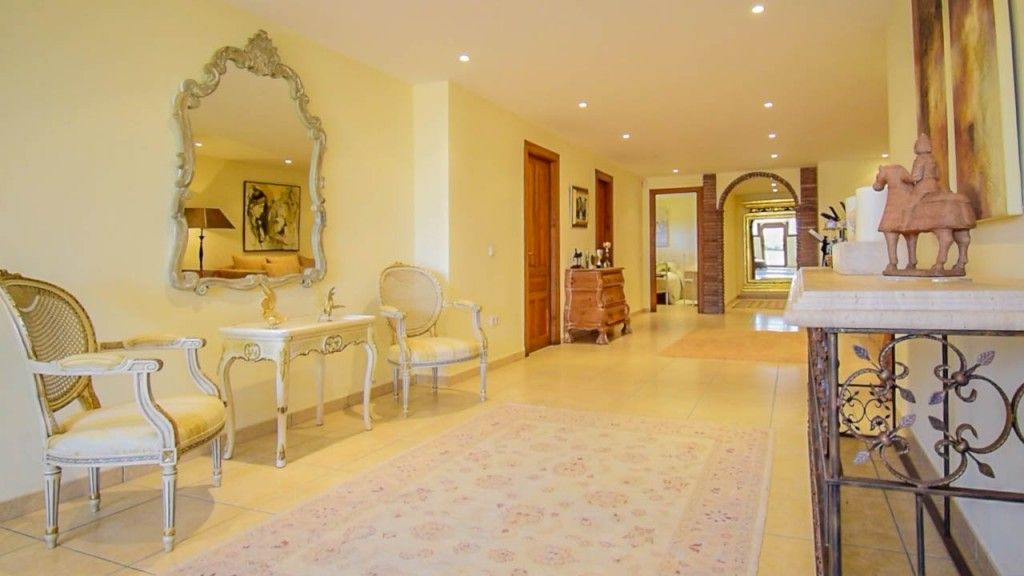 Entrance hall, guest toilet, separate fully equipped kitchen, dining room with fireplace, Andalusian patio, 3 bedrooms with on suite bathrooms.
