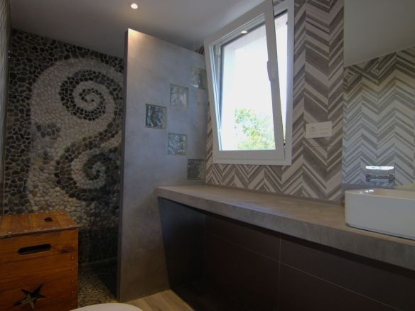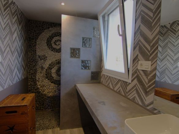Spacious, modern bathroom with walk-in shower. On the upper floor: Two double bedrooms to be finished. Toilet with downspouts…