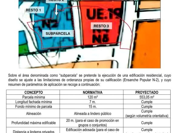 Imagine creating a space where families can enjoy the convenience of living in the city center, with all the necessary services within easy reach, without the need for a vehicle. The municipal ordinance classifies this property as Consolidated Urban Land (ENSANCHE POPULAR N-2), which guarantees an already developed urban environment with great potential.