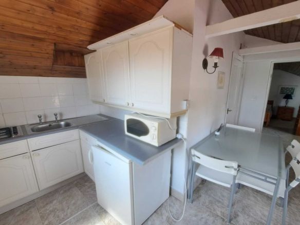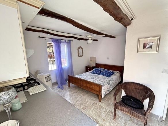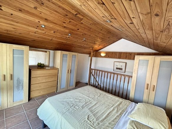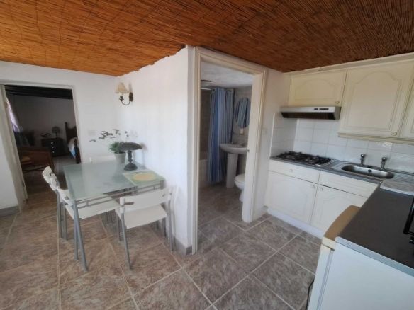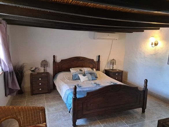 Four of them are on the ground floor and one on the first floor. Each apartment has unique features that make them ideal for both living and rental. The first apartment, close to the pool area, has a double bedroom, kitchen, portable air conditioning, ceiling fan, bathroom and a private terrace. The second apartment has a kitchen, dining area, bedroom with wooden ceilings and bed, bathroom with bathtub and private terrace. The third apartment, spread over two floors, offers a fully equipped kitchen, air-conditioned living room, dining area, full bathroom and an air-conditioned master bedroom on the first floor with double bed and wooden ceilings. The fourth apartment, located on the first floor of the property, includes a kitchen-dining room, dining area, double bedroom and a bathroom with bathtub. Finally, the fifth apartment is smaller and has one bedroom and a bathroom.