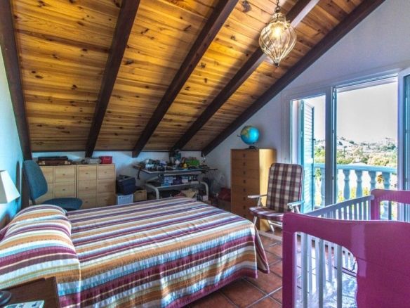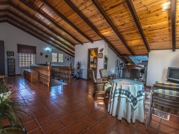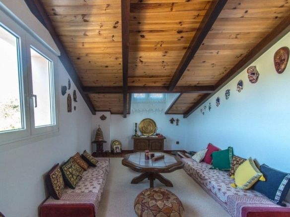 Upstairs: Large living room with wooden beams, seating area, and a TV area, plus 2 double bedrooms and a bathroom. Large open terrace with sun all day and panoramic views of the countryside and mountains.