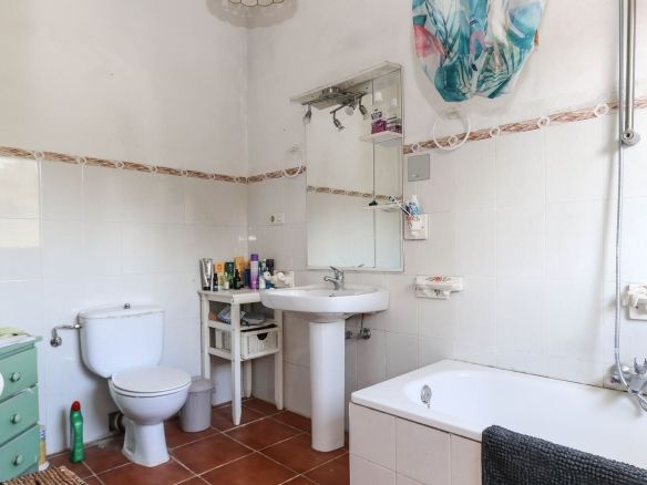 The main house offers two double bedrooms, a wide hallway, and a master bedroom with ensuite. Additionally, a side annex provides a third bedroom with ensuite bathroom.