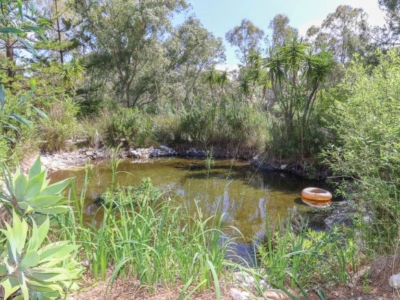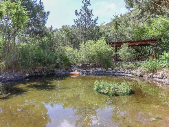 Following the stream and passing a large fish pond, you arrive at a completely separate two-bedroom property with its own pool. Hidden from view of the main house, this area is a serene oasis with breathtaking views of the surrounding mountains and valley. Adjacent to this house is a charming one-bedroom casita, offering even more accommodation or rental potential.