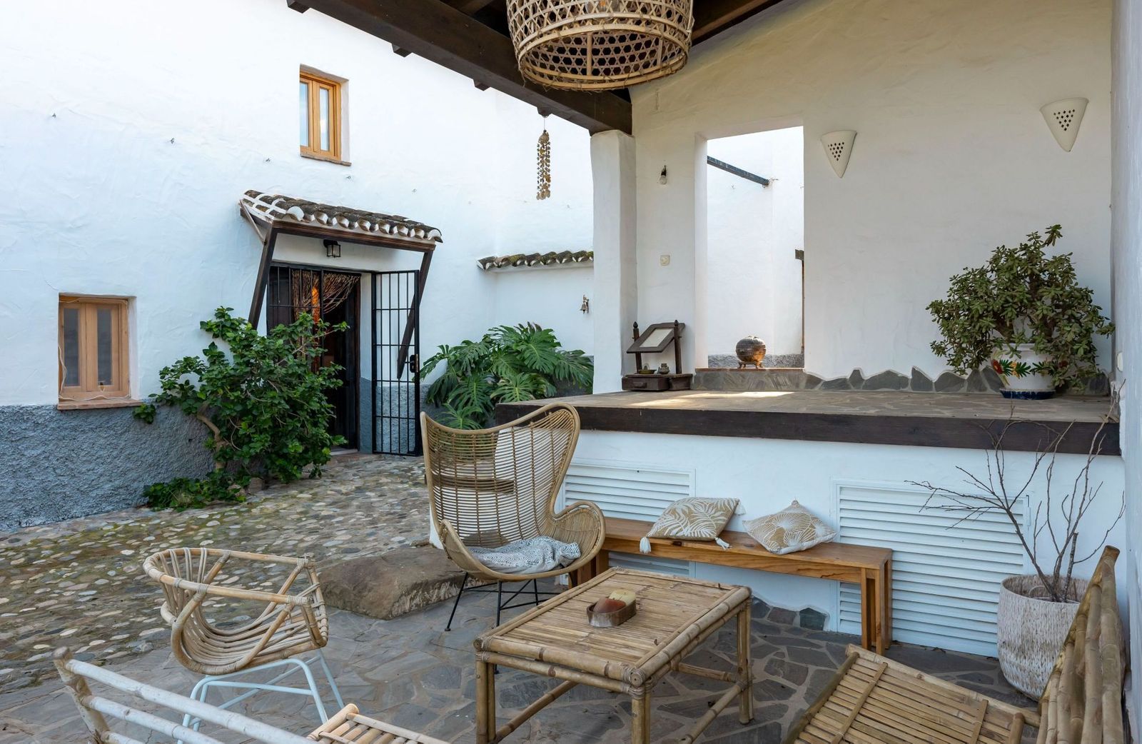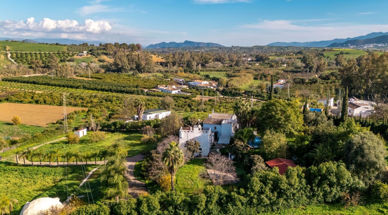 Nestled in a picturesque countryside setting, just 7 kilometres (a 15-minute car drive) northwest of the charming village of Coín, this exquisite country estate offers a unique blend of rustic charm and modern amenities. Accessible via good roads, the last 2 kilometres transition into a quaint country lane (with some potholes), providing a true escape into nature. Set on a sprawling 11,000m2 fully fenced plot, the estate boasts: