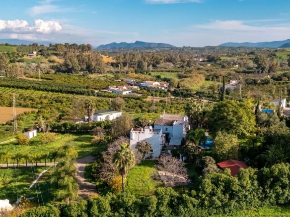 Nestled in a picturesque countryside setting, just 7 kilometres (a 15-minute car drive) northwest of the charming village of Coín, this exquisite country estate offers a unique blend of rustic charm and modern amenities. Accessible via good roads, the last 2 kilometres transition into a quaint country lane (with some potholes), providing a true escape into nature. Set on a sprawling 11,000m2 fully fenced plot, the estate boasts: