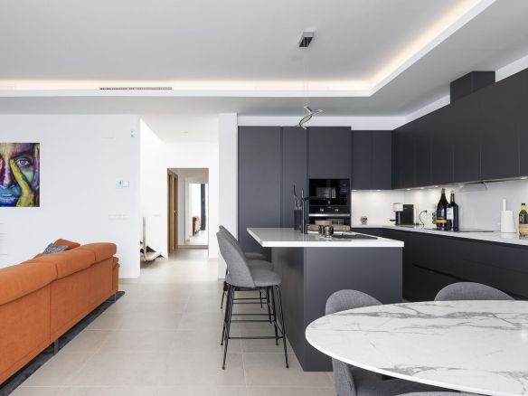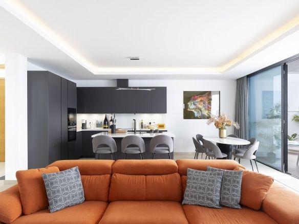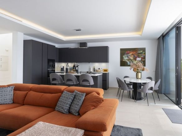 Open living space – A bright, open-plan living room with a sleek designer kitchen fitted with high-end appliances. Perfect for families and guests.