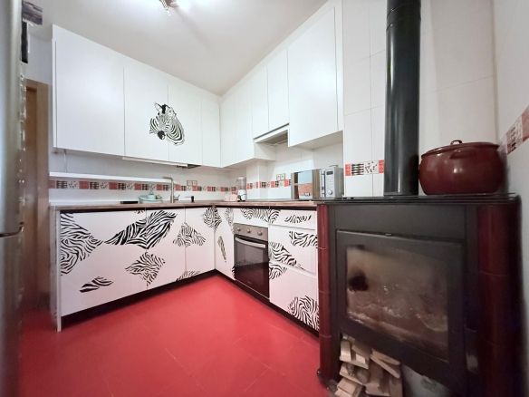 • Modern kitchen with wood-burning stove