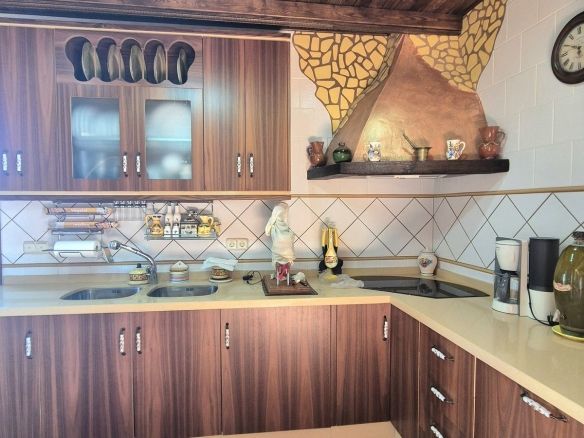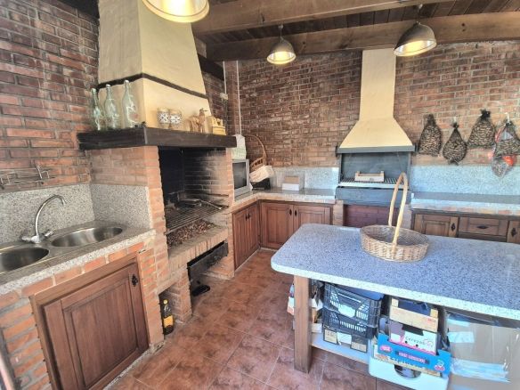Two separate covered kitchens: one with a barbecue and the other fully equipped with a laundry room, dishwasher, storage room, and dining area.