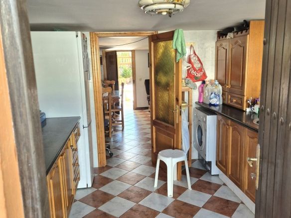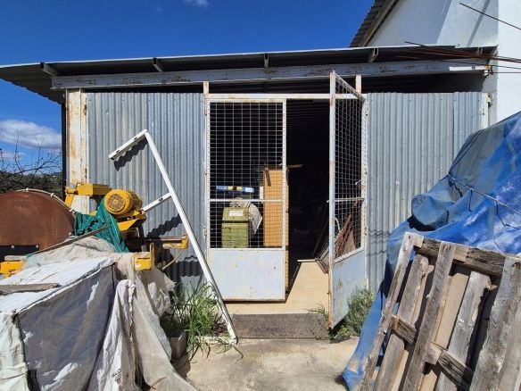 Outside, there are additional warehouses that can be converted into accommodation or stables, as well as covered storage areas. It also has a plot of land with several fruit trees.