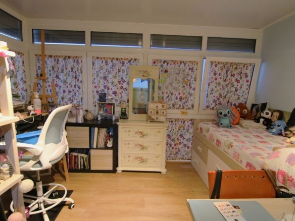 The second floor is distributed into three double bedrooms (one of which has a private terrace), all with good ventilation, natural light, and a terrace. There is also a full bathroom with a bathtub.