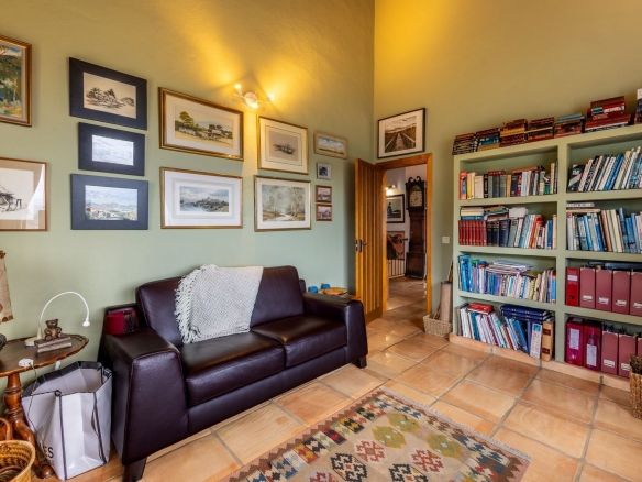 From the hall there is access to the integral, two-bedroom, guest apartment suite, the guest-4th bedroom, currently serving as an office, a family shower room and the primary bedroom. The main bedroom is not only sizeable, offering incredible views from all three windows, has a large, open plan en-suite bathroom and separate dressing-walk-in wardrobe.