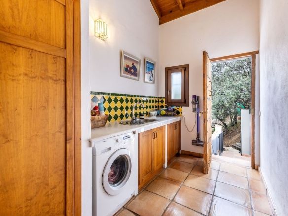 On entering the property, you will find a generous and well-crafted open plan lounge-kitchen-dining room leading to an L shaped, indoor-outdoor terrace. Throughout the main floor, the decorative and vaulted wooden ceilings are 7 meters in height and are clearly the work of time served craftsmen. Adjacent to the family-style kitchen is a useful pantry, next to which, a large utility room with outside access.