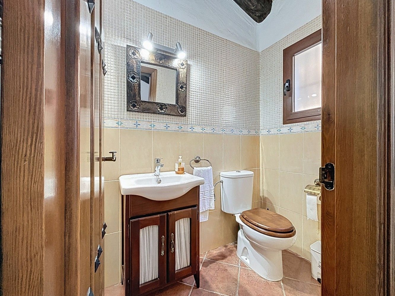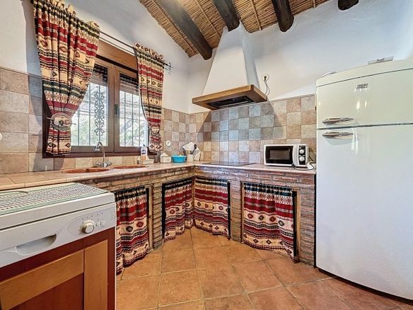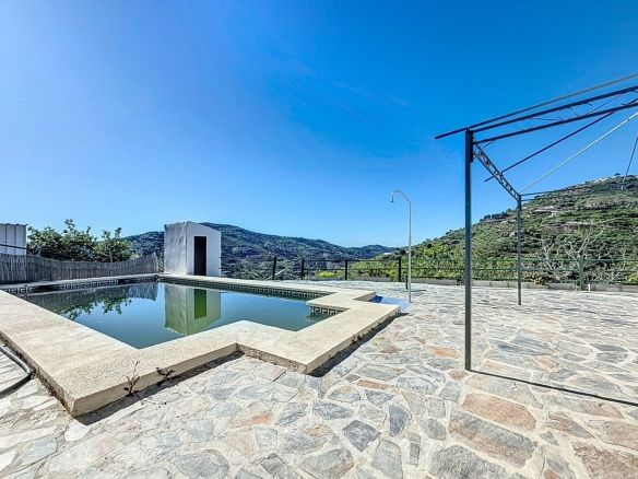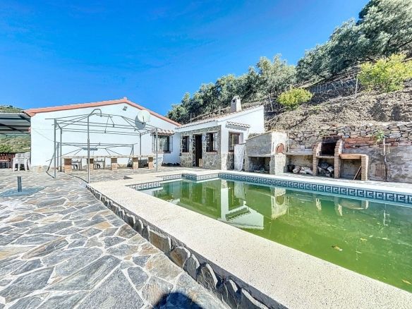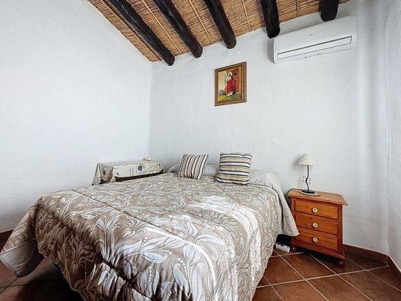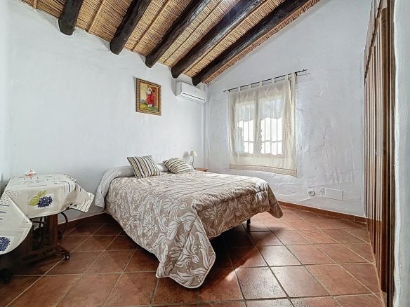Nestled in the gentle hills below Cómpeta, with sweeping views of the surrounding mountains, this charming country house in traditional Andalusian style offers a peaceful retreat for nature lovers and those seeking tranquility. The single-storey house features a cosy living and dining area with an adjoining, typically Andalusian kitchen. Three bedrooms, one bathroom, and a separate guest WC provide comfortable space for family or friends. Underfloor heating and air conditioning in the main rooms ensure comfort all year round whether on hot summer days or cooler winter nights. Outside, a spacious covered terrace invites you to relax, while the refreshing pool, additional guest WC, and a small, built-in summer kitchen create the perfect setting for outdoor living and entertaining. The property is set on a natural plot with various fruit trees a beautiful frame for life under the southern sun. An authentic home full of character and modern comforts perfect as a holiday retreat or permanent residence in one of Andalusias most picturesque regions. We are pleased to be able to present this dream property to you soon, either personally or via virtual viewing. Because this world is unique – just like our Axarquía. In Andalusia. On the Costa del Sol. Here, on the sunny side of life…