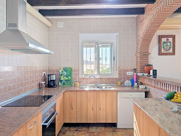 Stepping inside, you’ll immediately be captivated by the villa’s authentic Andalusian charm, with high beamed ceilings, exposed brickwork, and rustic details that create a warm and inviting atmosphere. The thoughtfully designed layout features: