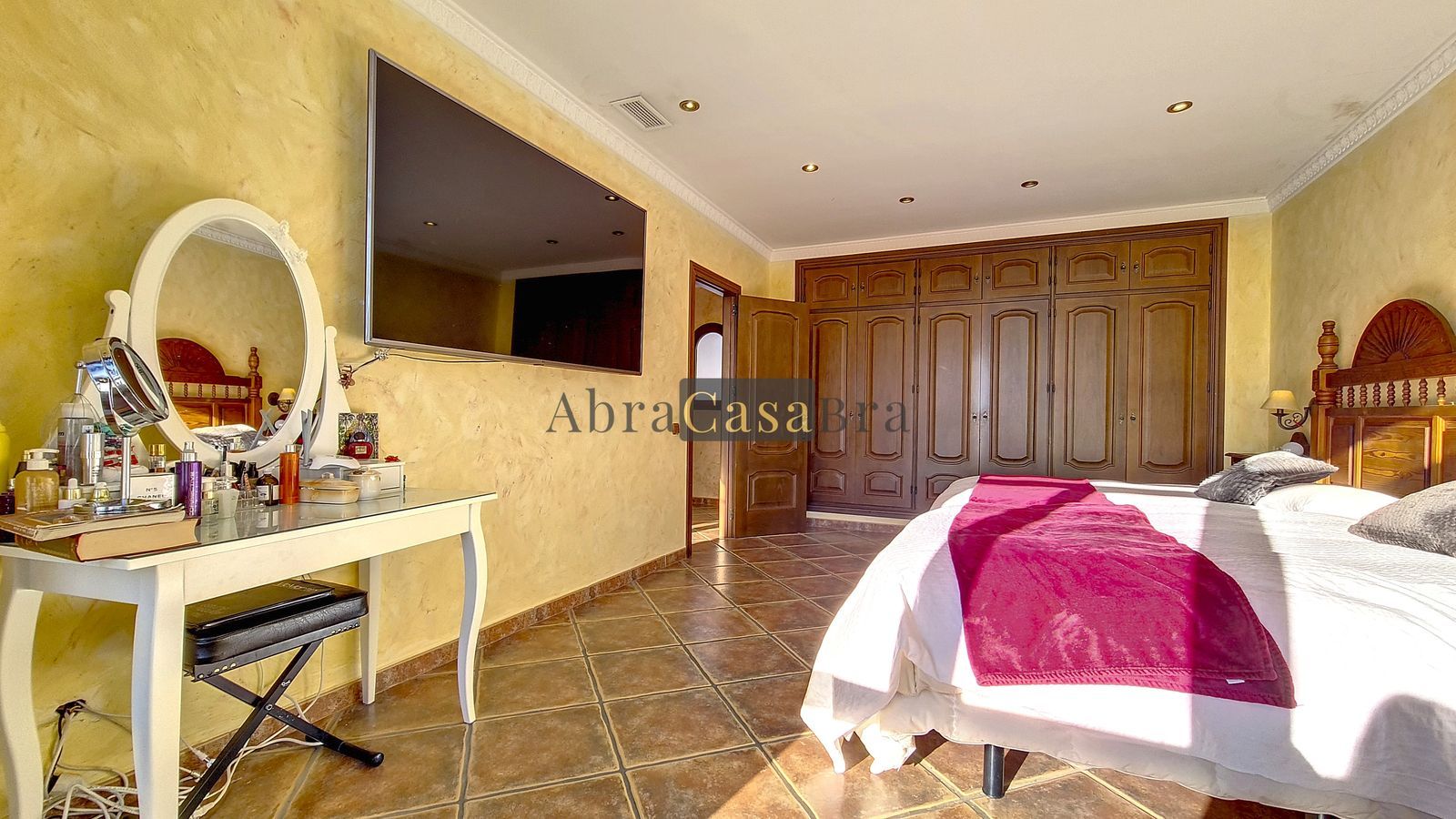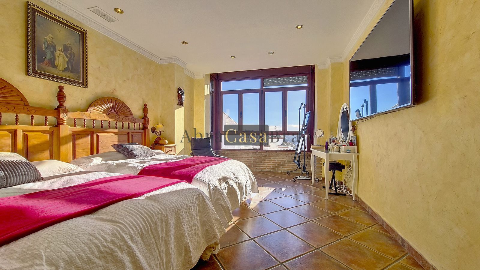 The beautiful master bedroom with fitted wardrobes is very spacious gives beautiful views over the mountains with the sea in the distance. It has two double beds.