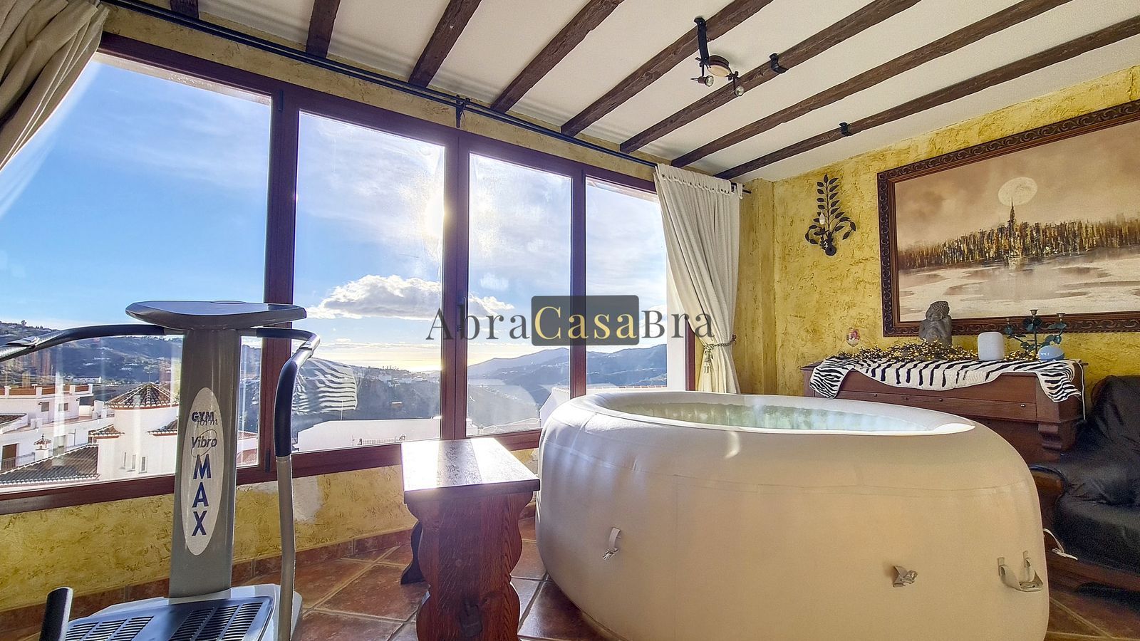 The 2 roof terraces give breathtaking views of the mountains, the sea and the village. On some days, even the Atlas mountains in Morocco can be clearly seen. The property has fibre-optic internet and there is double glazing. The water is heated via solar panels and there is air conditioning throughout the house.