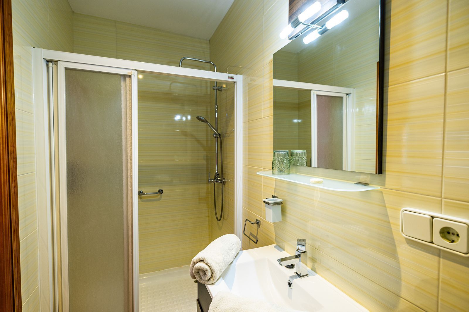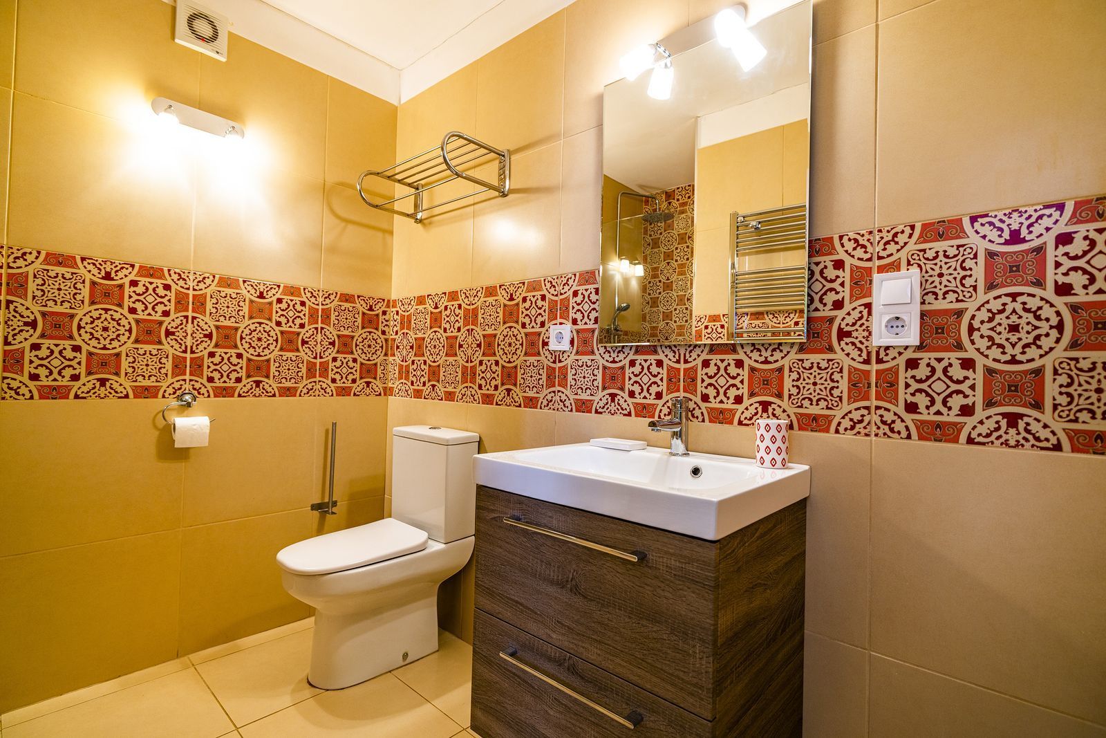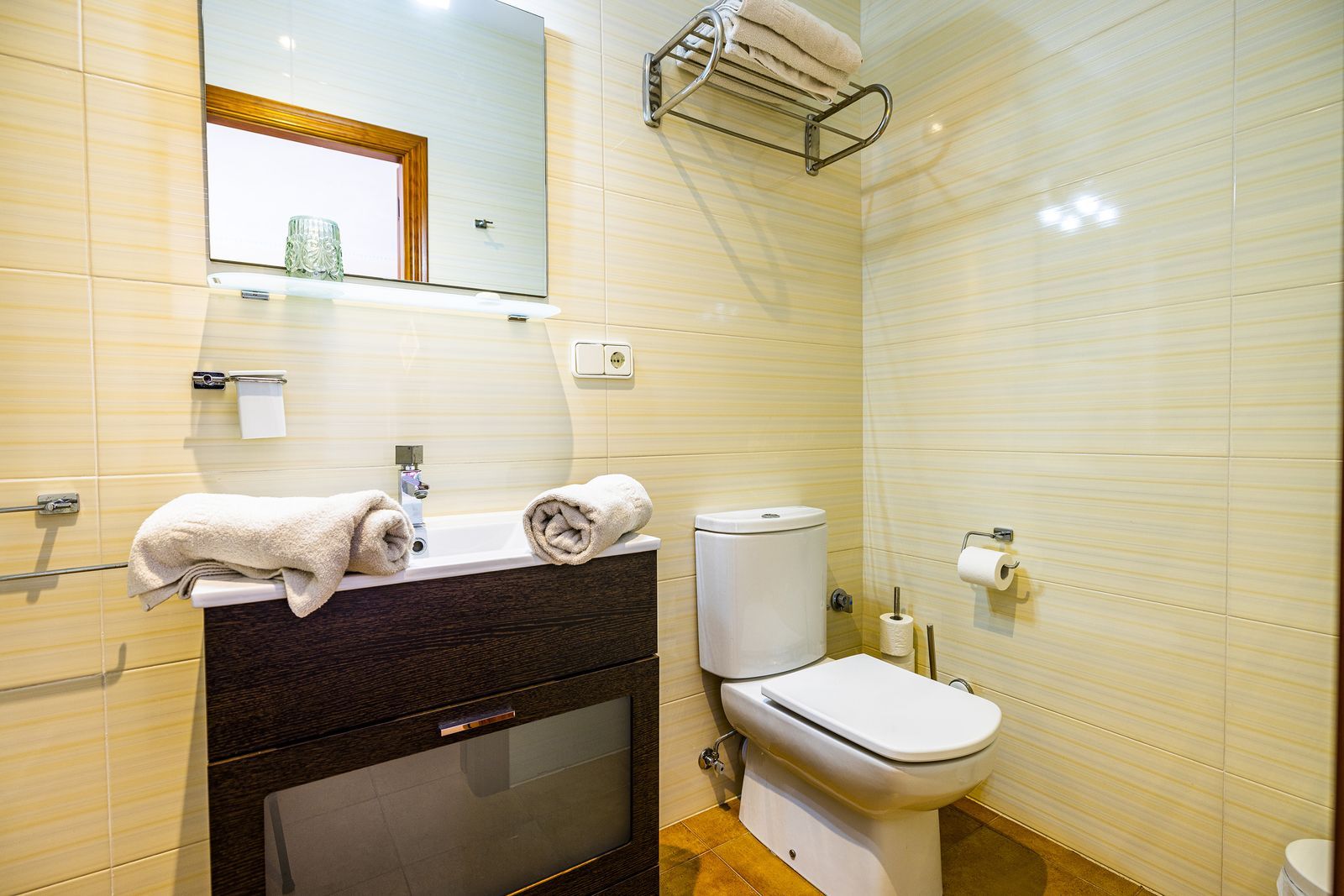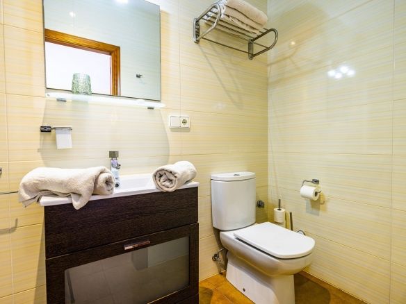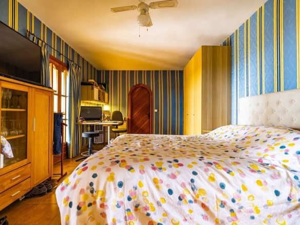 At the main entrance is a lounge/serre, and on the ground floor is the fully equipped kitchen, two guest bedrooms and a guest toilet. On the first floor, there is a spacious living room/playroom and two guest rooms.
