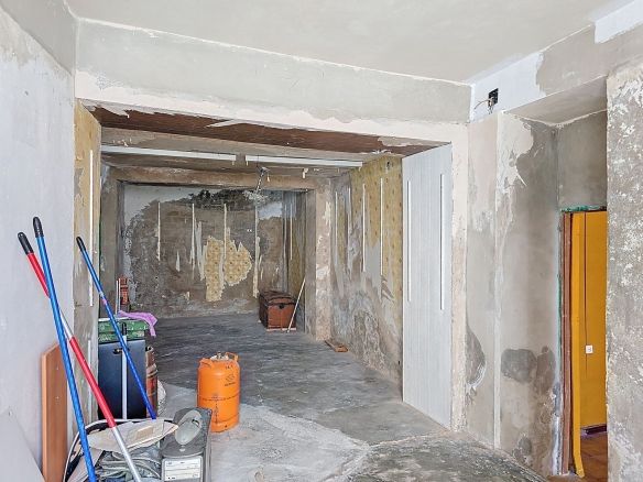 Original features such as handmade floor tiles, wooden beams, Juliette balconies, and shuttered windows give the property authentic charm. The structure is solid, with a new roof and re-rendered ground floor, but a full internal renovation is needed, including kitchen, bathroom, plumbing, and electrics, to meet today’s comfort and design standards.