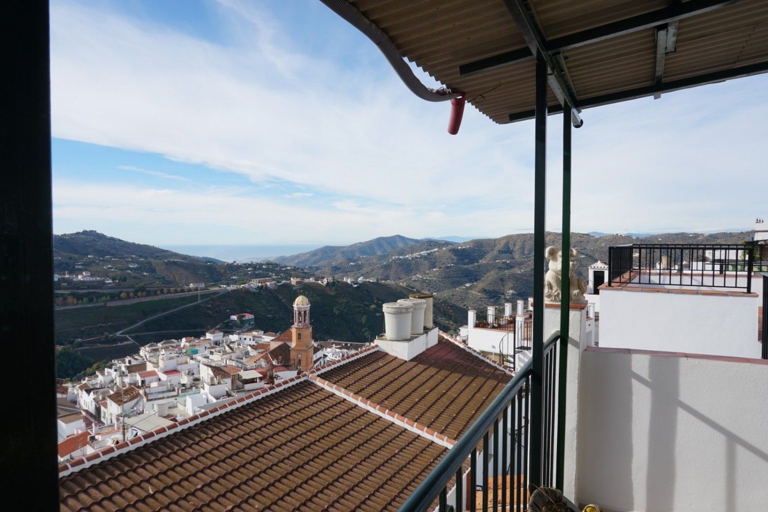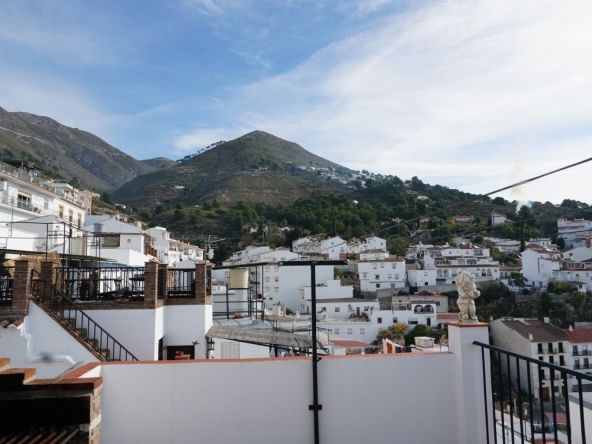 Great town house in Cómpeta. If you are looking for a home in a quiet place, without noise or pollution, with good views, with all the services of a city at hand and at a very reasonable price, this is a perfect option. The house was completely renovated in 2005. It consists of four floors. The first has a toilet, a small living room and a good bedroom. Going up to the second floor we find a bedroom, a complete bathroom, kitchen and living room. From the living room there is access to a workshop that has access to the street behind the house. The owner of the property can park a car at this exit. On the third floor there are two great bedrooms. And on the fourth floor there is another very large one, with access to a fantastic terrace that has a large kitchen, barbecue, solar panels, a water tank and incredible panoramic views of the town and the sea.