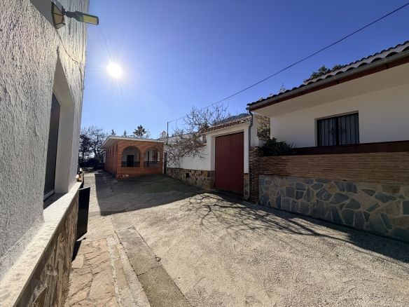 The finca sits on a plot of 1048 m2, which includes an elevated swimming pool area, ideal for enjoying tranquillity and open views of the surrounding natural environment. Further along the plot, there is a practical tool shed, perfect for storage purposes.