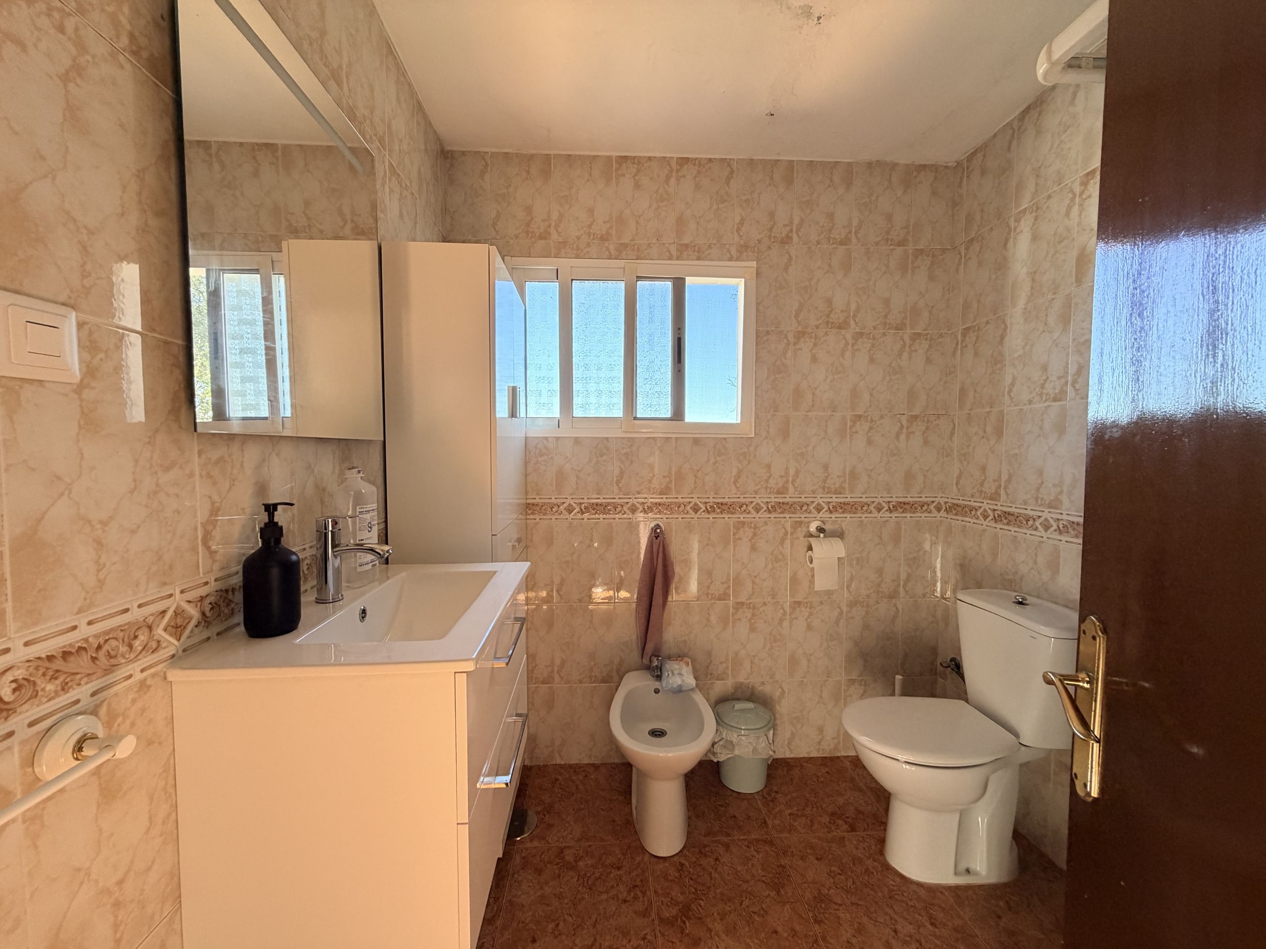 Externally, a staircase leads to the first floor, currently configured as an independent apartment. This level boasts a magnificent terrace, ideal for enjoying the sun and the outstanding views over the Guadalhorce Valley. Upon entering the apartment, there is a large and very bright living room, from which one accesses an equally spacious and fully equipped kitchen. Along the hallway, on the left-hand side, is the main bedroom, of good proportions. This is followed by a room currently used as a study, as well as a third bedroom of generous size. On the right-hand side is the bathroom, generously sized, well laid out, and in good condition.