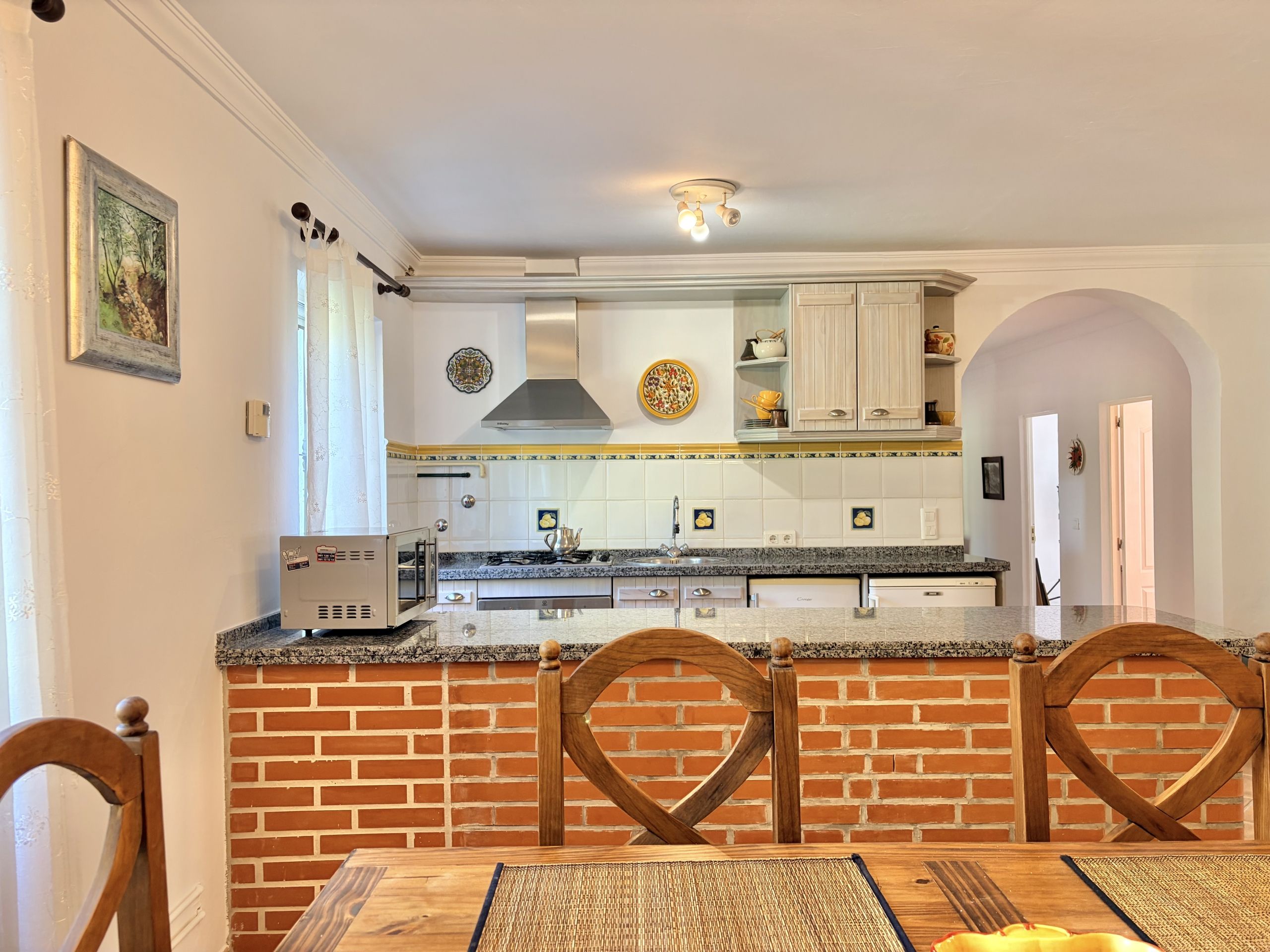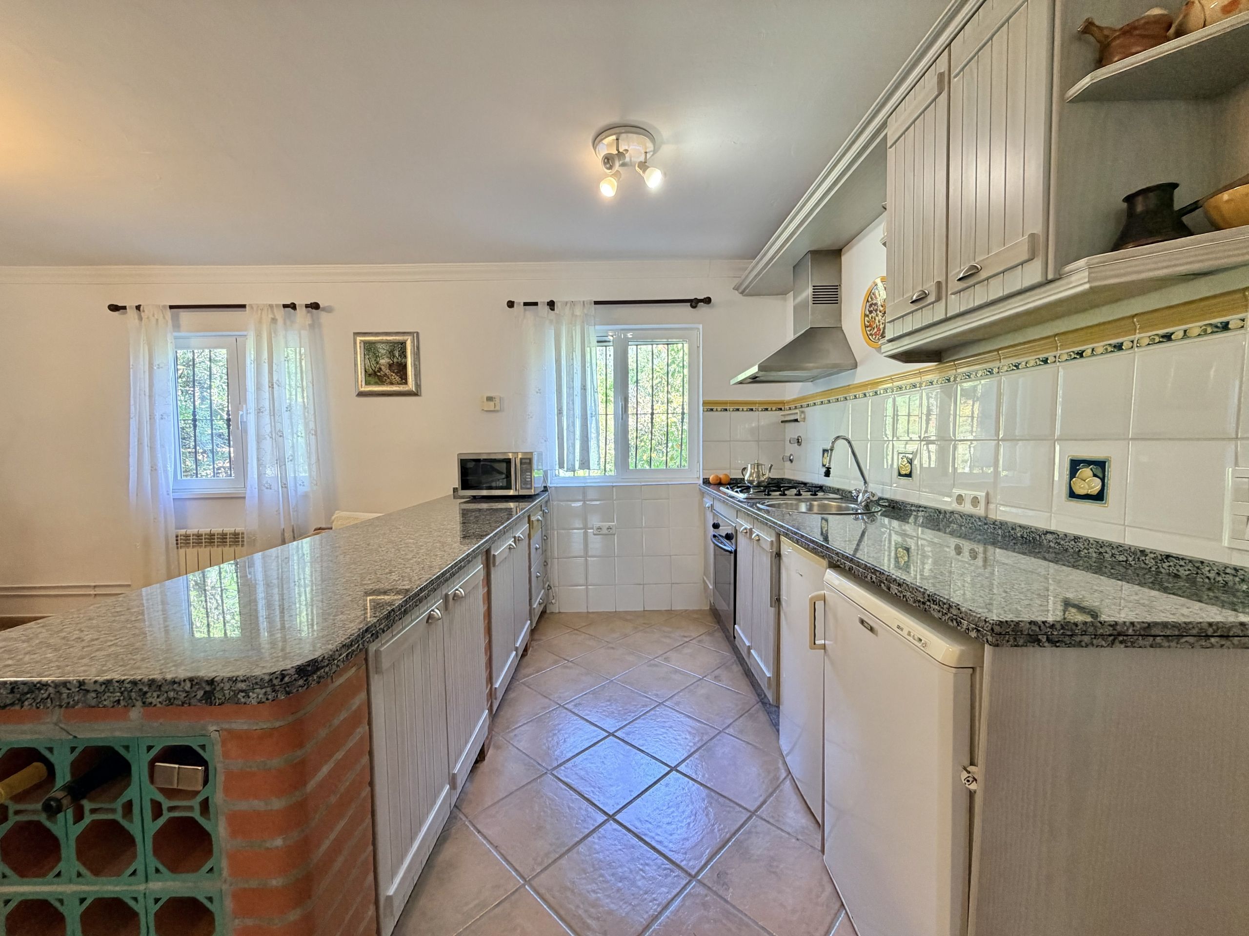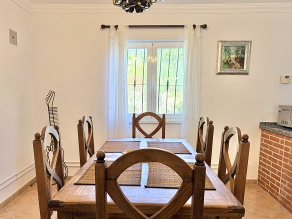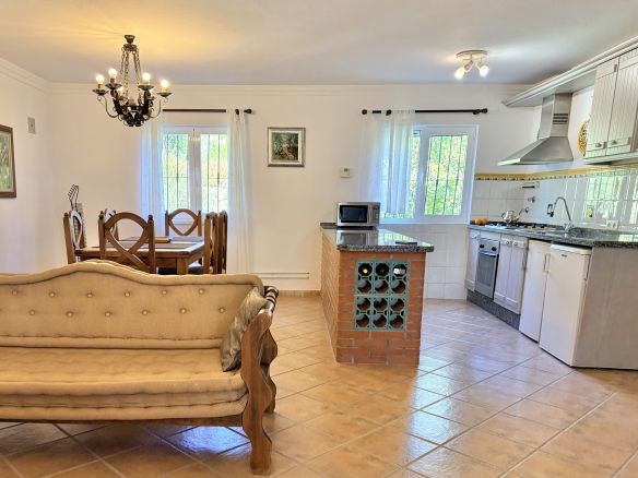 Set in meticulously maintained landscaped gardens Finca El Bohío is in move condition. Entering from the well proportioned terrace at the front of the property you are greeted with a large, open plan, kitchen, living and dining area with double aspect windows to the front and rear of the property.