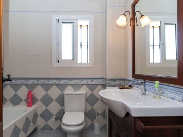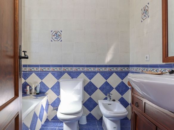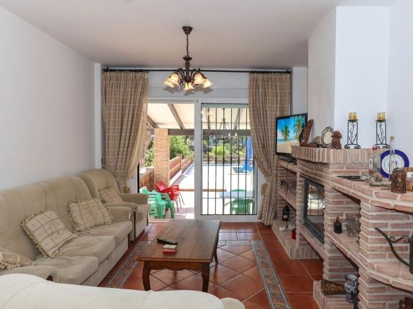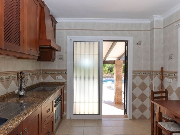 The house itself is spread over two levels. On the ground floor is the main house, a three bedroom, 2 bathroom property with the living room and kitchen both boasting access to the shady terrace overlooking the pool.