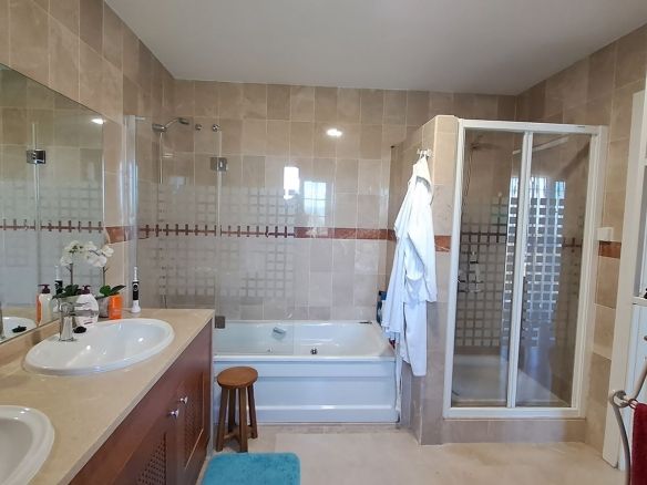 Overlooking the golf course in a very quiet urbanization, this house offers every luxury.