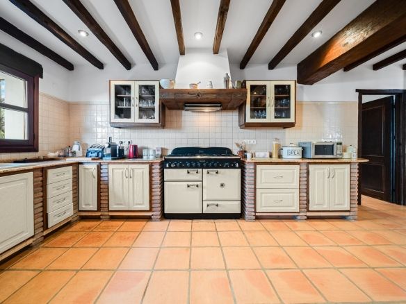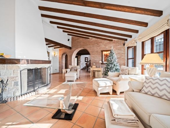 The villa is in excellent condition and captivates with its authentic Andalusian character: beautiful wooden beams, brick and stone details, and an elegant rustic finish that creates a warm and inviting atmosphere.