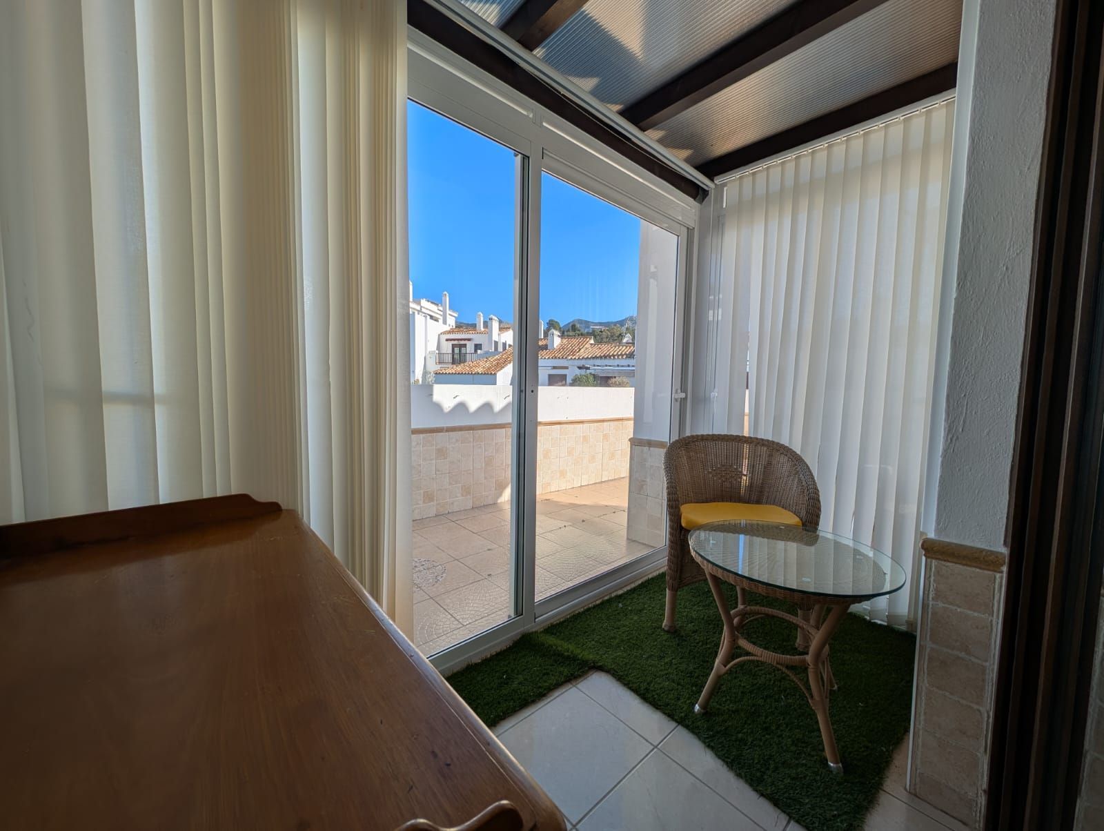 3 bedrooms, one en suite, all with enclosed terraces facing the exterior.