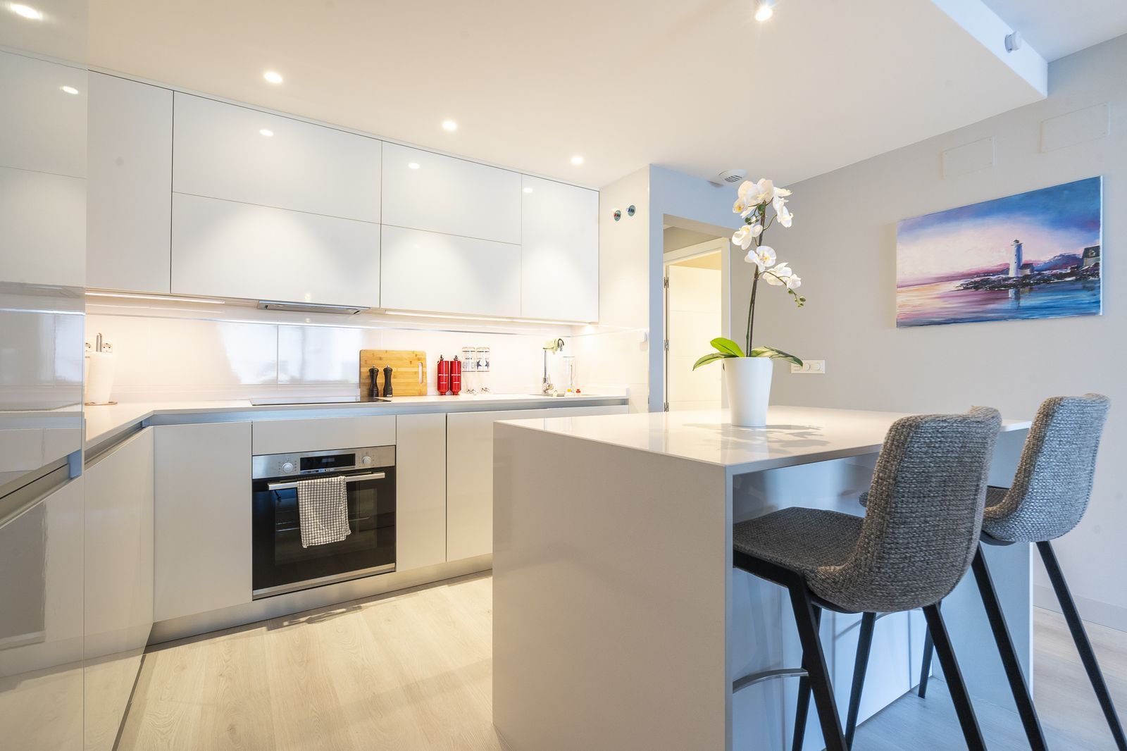 The apartment has been upgraded with glass curtains, the kitchen, and nice furnitures.