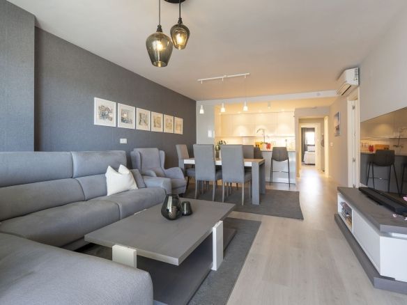 The apartment has been upgraded with glass curtains, the kitchen, and nice furnitures.
