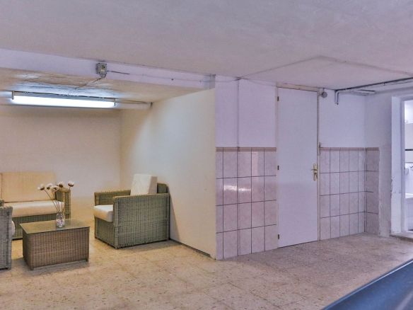 The garage includes what can easily be done as wine cellar, space for 3 cars, utility room, laundry room and even another patio